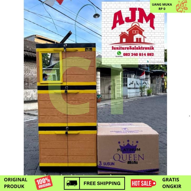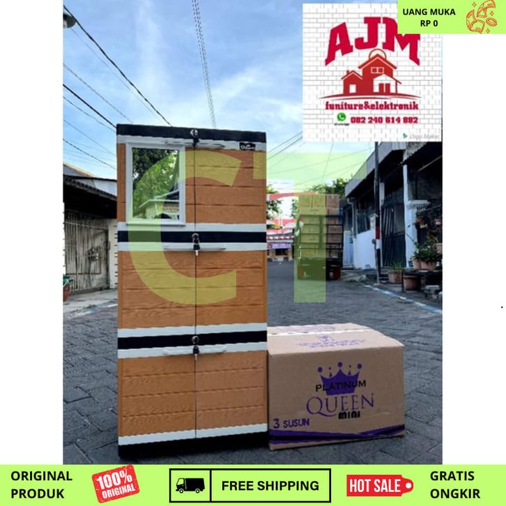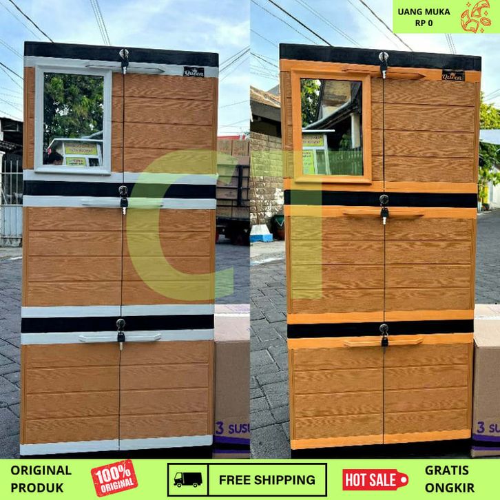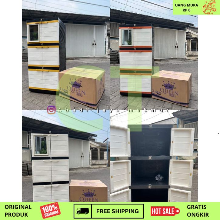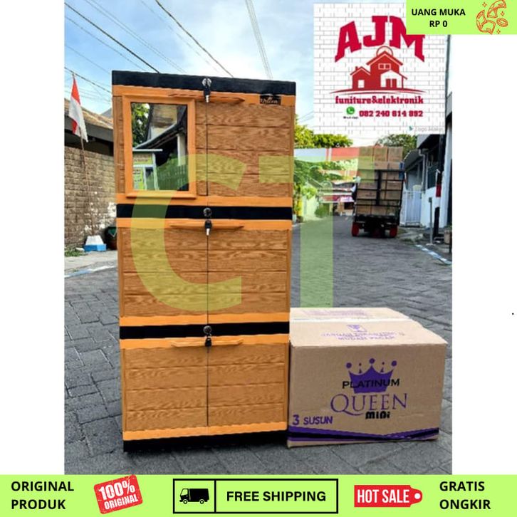 lemari pakaian plastik new susun 3 platinum / lemari plastik murah / lemari plastik kaca Tanpa Dp