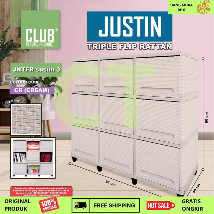 CLUB TRIPLE FLIP SUSUN 3 LEMARI PLASTIK SERBAGUNA JUSTIN Tanpa Dp