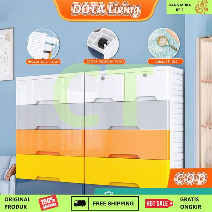 DOTA Living Lemari Pakaian Plastik 48CM Putih Laci Susun Storage Cabinet Plastik Rak Susun Penyimpanan Lemari Plastik