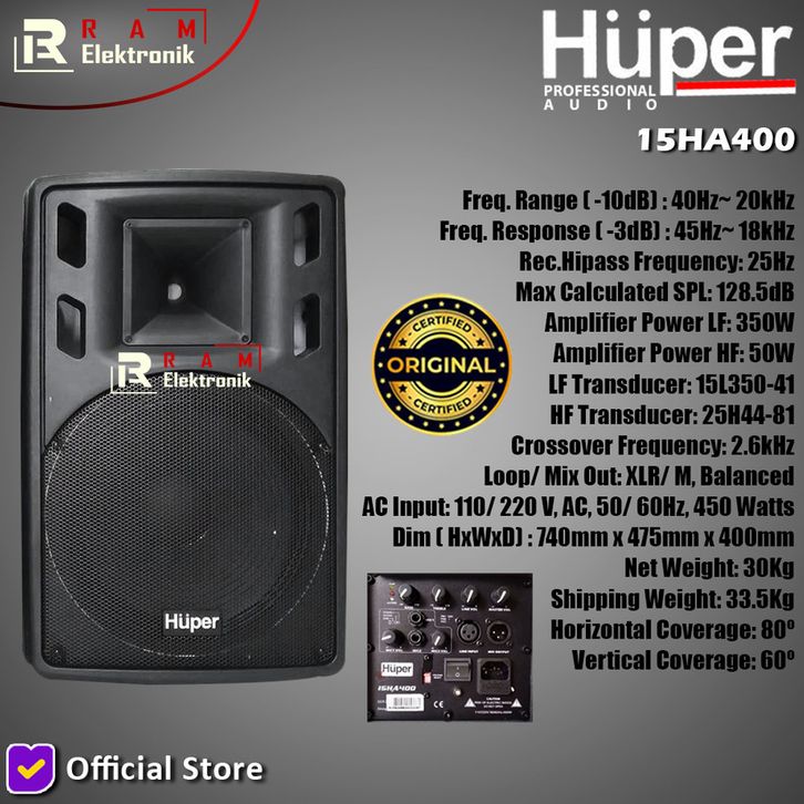 Speaker Aktif 15 Inch HUPER 15 HA400 / 15HA400 / 15 HA 400 Original HARGA 1PCS