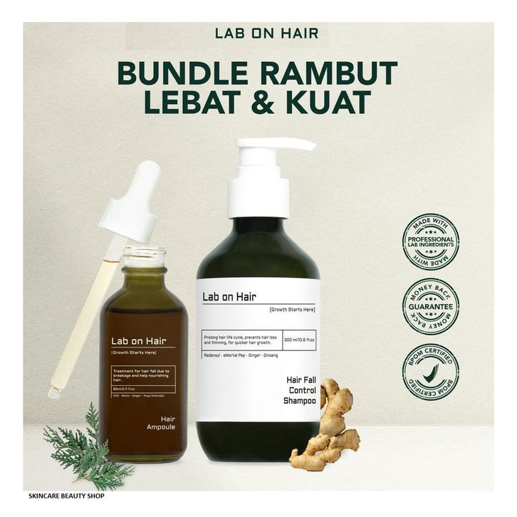 Lab On Hair Bundle Combo Anti Hair Fall Ampoule + Shampoo - Paket untuk Mengurangi Rambut Rontok