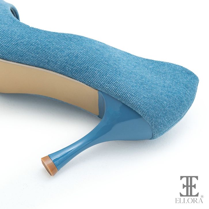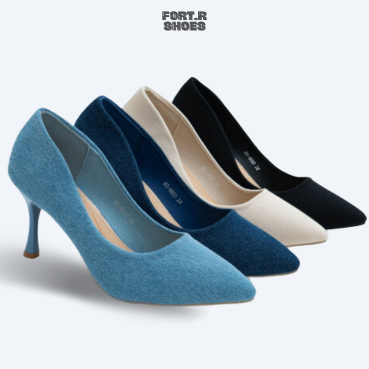 SEPATU KERJA WANITA SEPATU HAK FORMAL ELLORA EG-8800 SEPATU HEELS IMPORT BAHAN DENIM 8.5CM