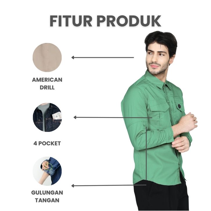 Kemeja Tactical Lapangan PDL Outdoor Lengan Panjang Bahan Cotton Kemeja Panjang Pria Kemeja Kerja