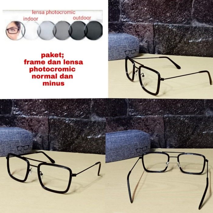 kacamata normal dan minus tony stark lensa photocromic rubah warna