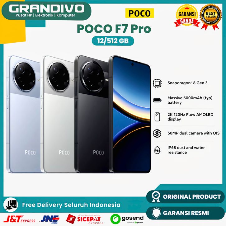 NEW HP POCO F7 Pro 12G/512G | Snapdragon 8 Gen 3 | 6000mAh | 2K 120Hz AMOLED | 50MP Camera OIS Garansi Resmi - Grandivo