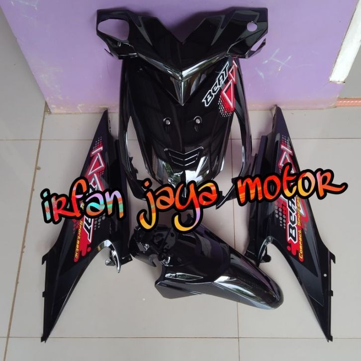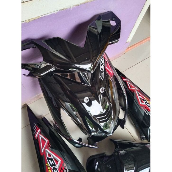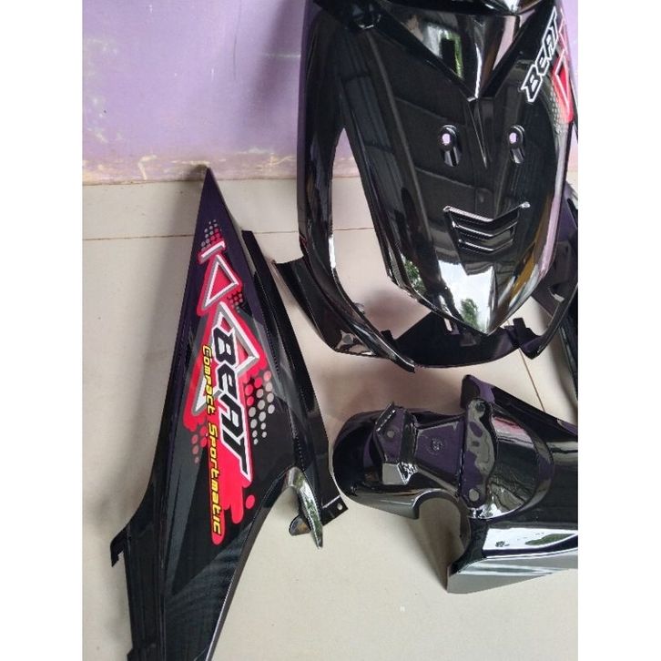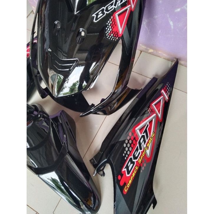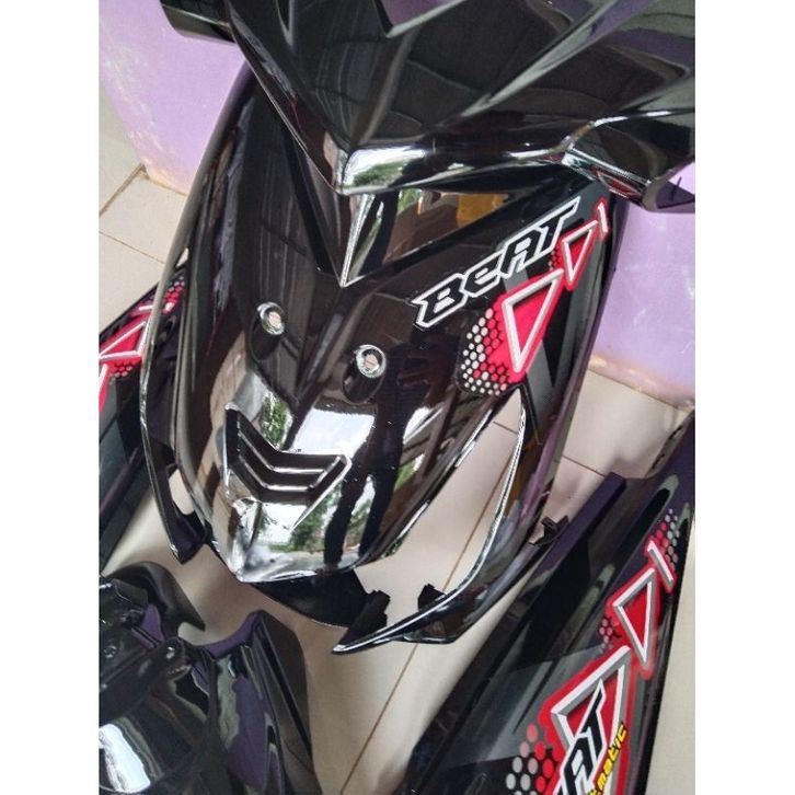 Cover body full halus honda beat karbu Hitam plus striping 2010 2012
