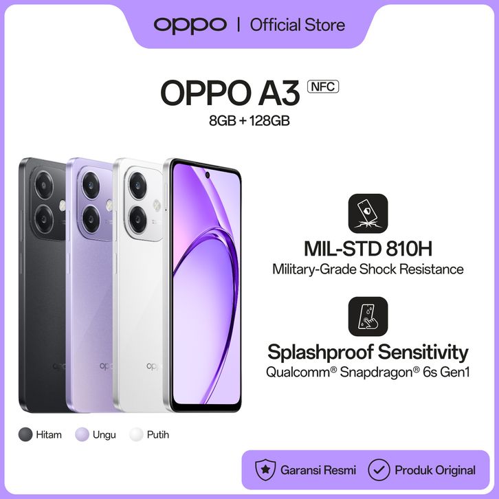 OPPO A3 8GB/128GB [Military Grade Shock Resistance, Qualcomm Snapdragon 6s Gen1, 45W SUPERVOOC 5100mAh Battery]