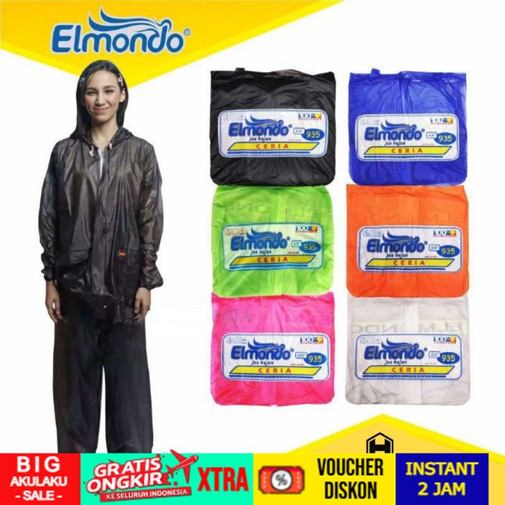 GRATIS ONGKIR Elmondo 935 Jas Hujan Jaket Celana - Jas Ujan Setelan Dewasa Karet Pria - Wanita TERLARIS
