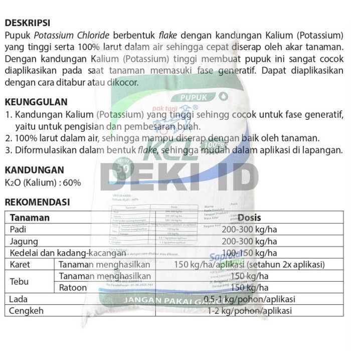 KCL Putih Pak Tani 5 Kg Kemasan Pabrik Pupuk Kalium Tinggi Tanaman
