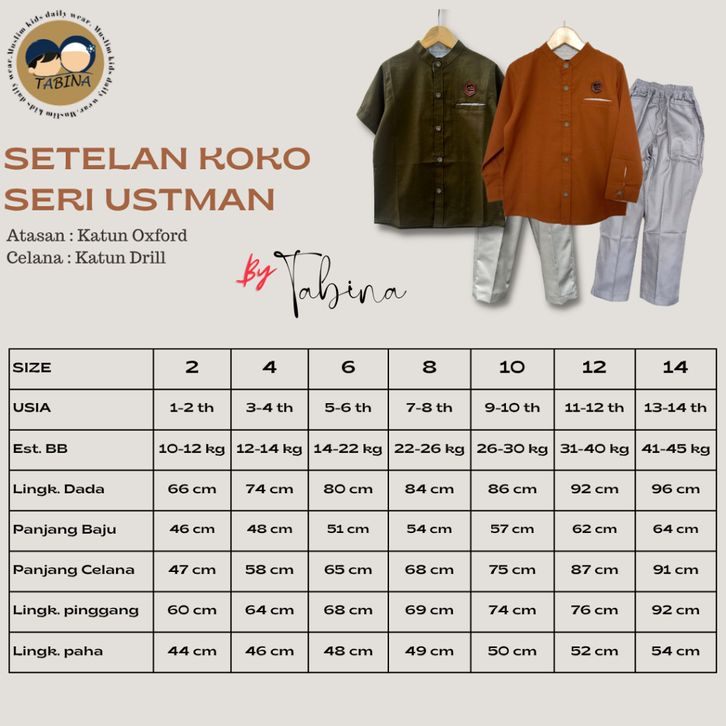Setelan Kemeja Koko Anak Laki Laki sampai Remaja Lengan Panjang Tabina seri Ustman usia 2 - 14 tahun