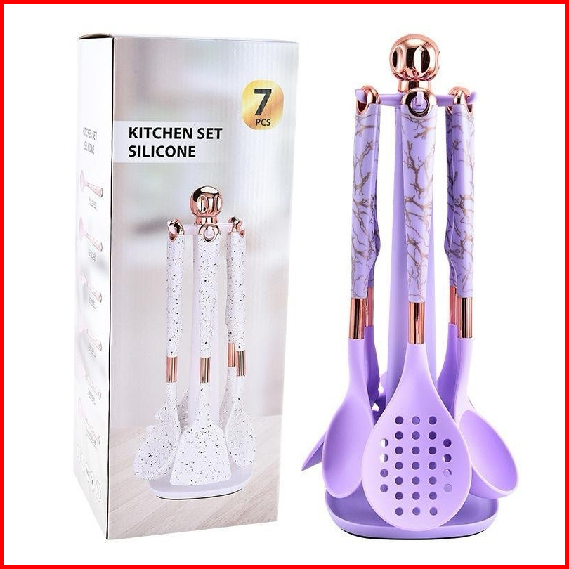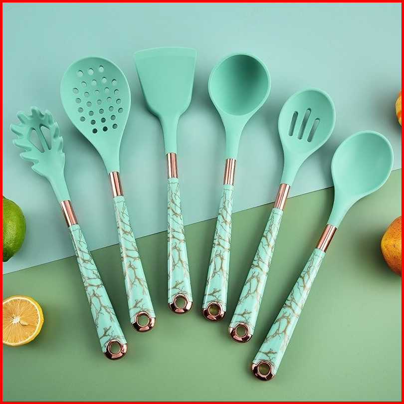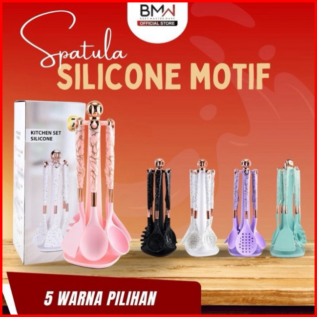 Sodet Spatula Silikon Set Motif Marmer Kitchen Set Silicone Utensil Silicon Motif Marmer Sodet Penggorengan Silikon Anti