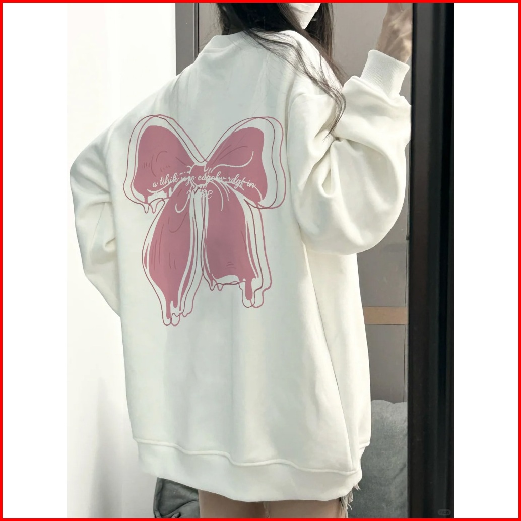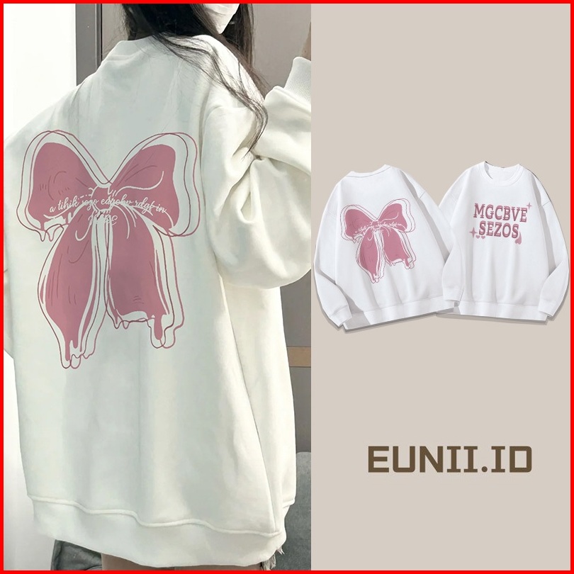 Eunii Sweater Putih Big Bow Sweater Lengan Panjang Model Versi Korea Pakaian Wanita Sweater Wanita