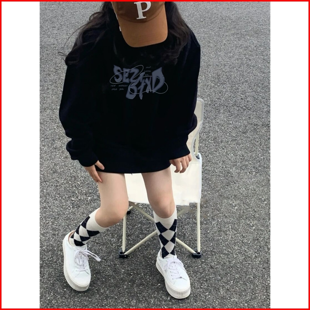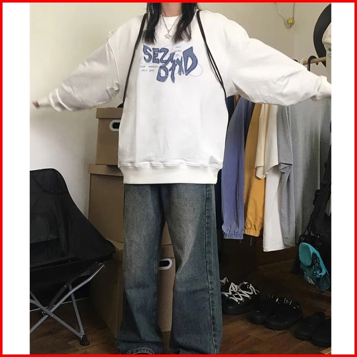 Forteid Sweater Lengan Panjang Oversize Sweater Wanita Premium Korean Style Switer Wanita Oversize Pencetakan Bahasa Ing