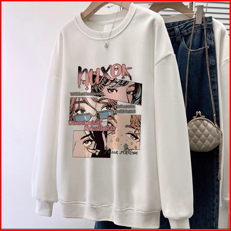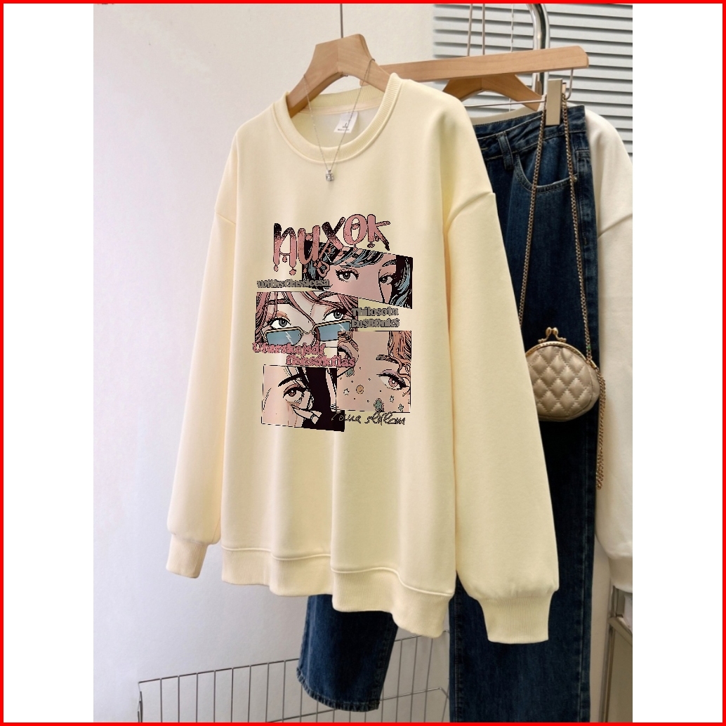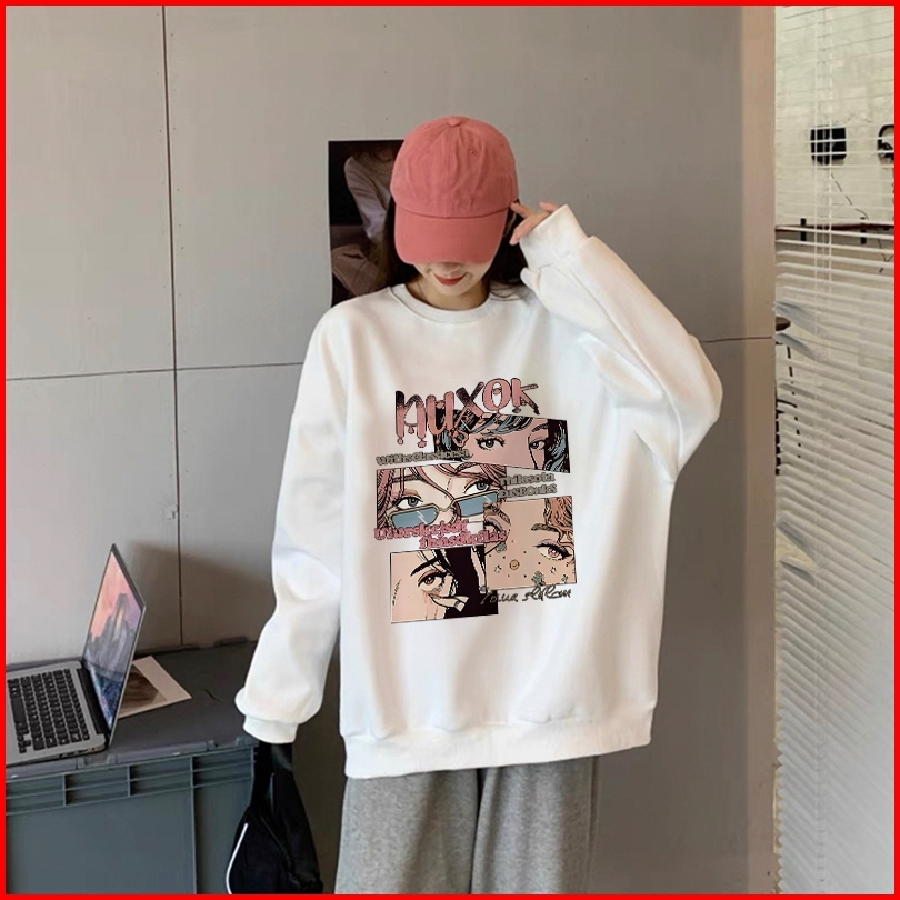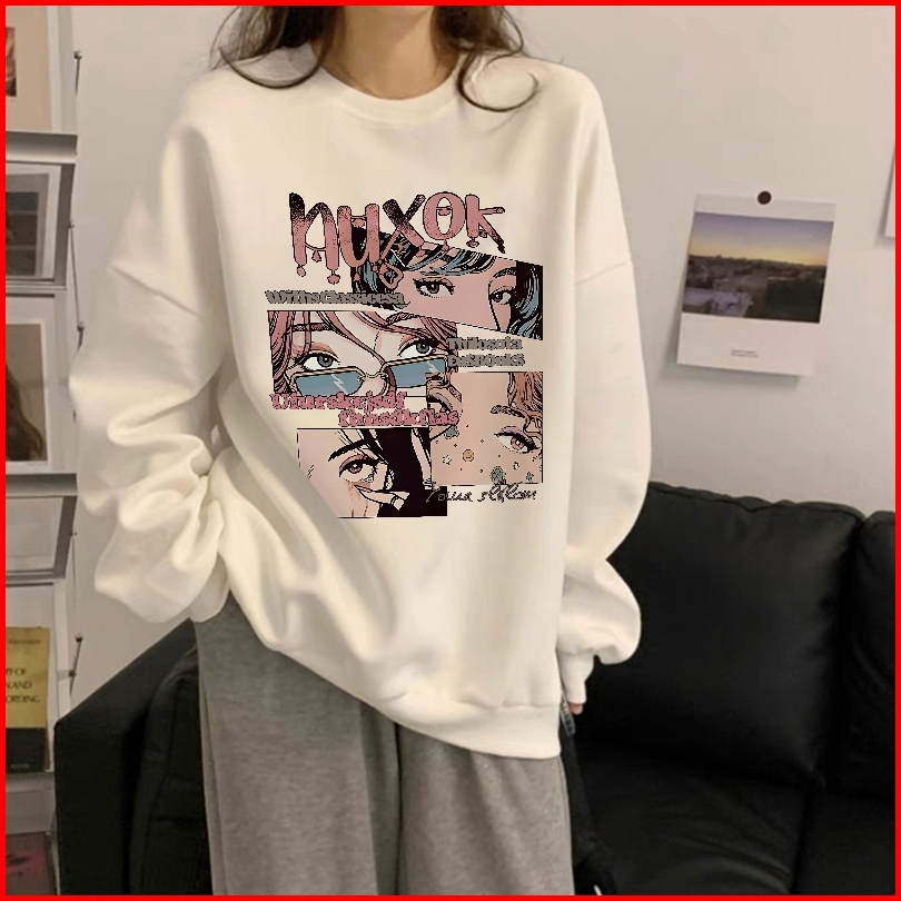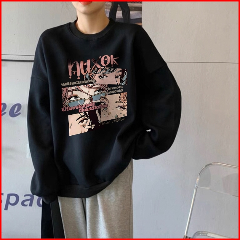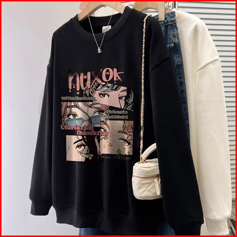 Forteid Sweater Lengan Panjang Oversized Street Style Korean Style Switer Wanita Oversize Cetakan Gadis Carter Anime Kor