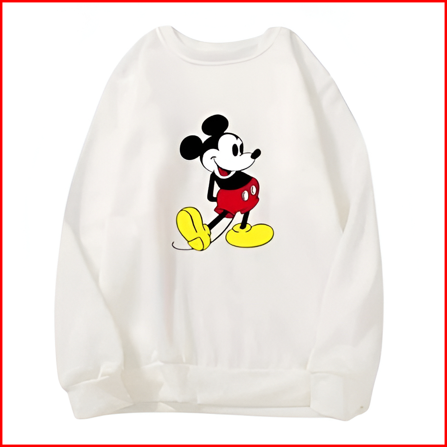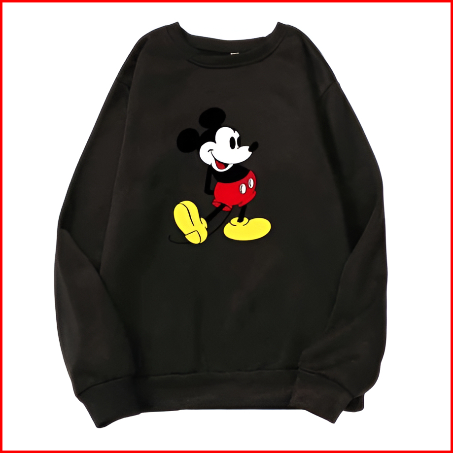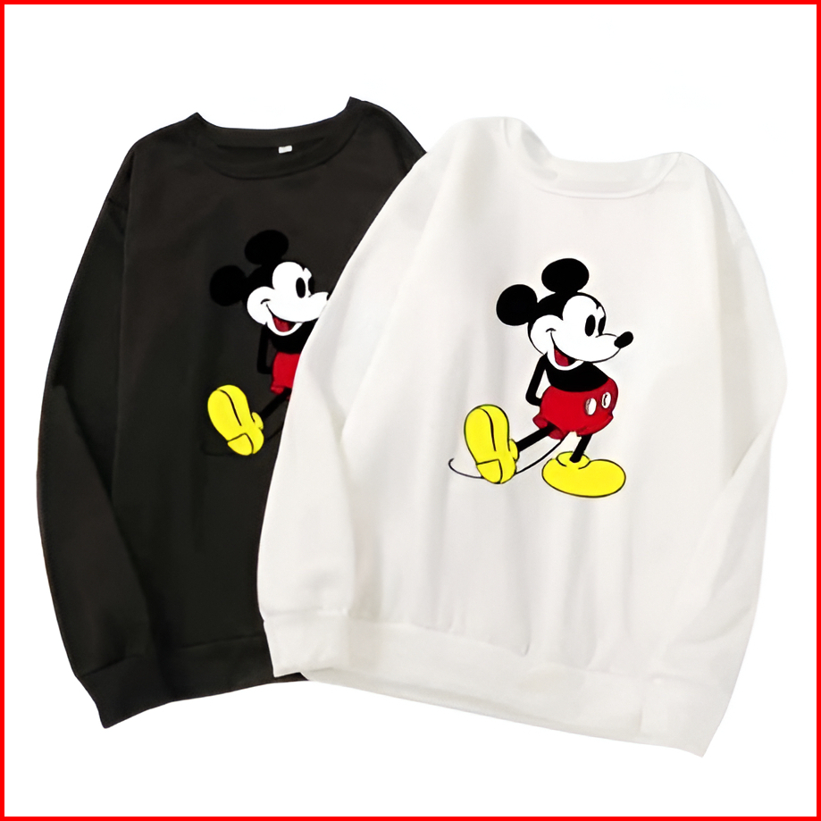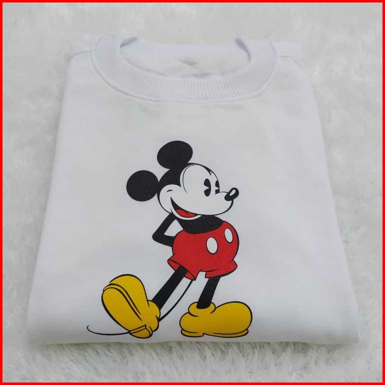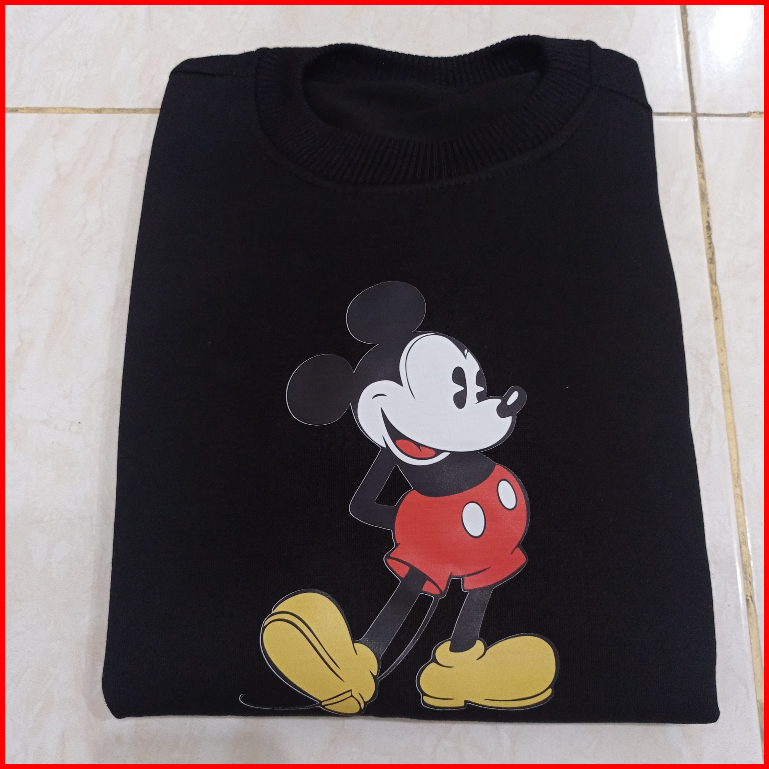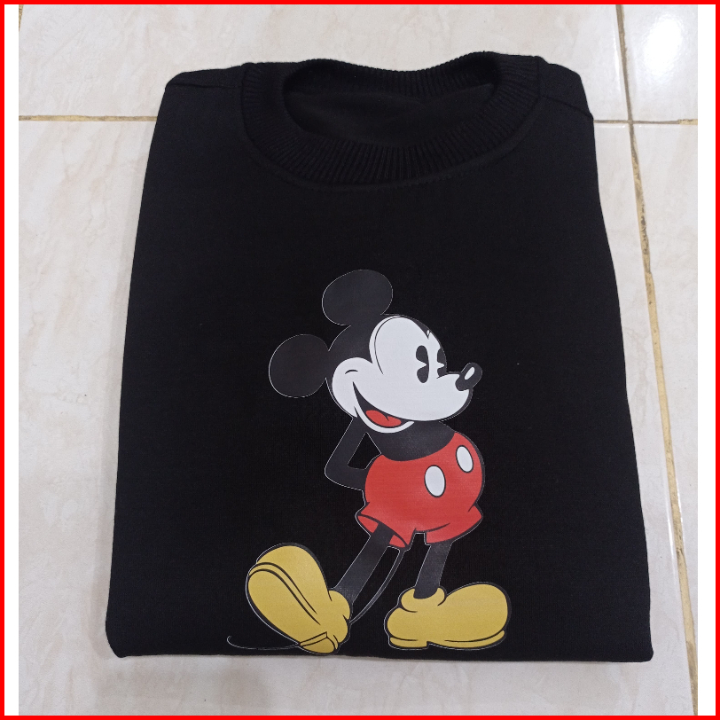Lsh Sweater Basic Crewneck Mickey Mouse Bahan Cotton Fleece Premium Size M-xxl Wanita Dan Pria