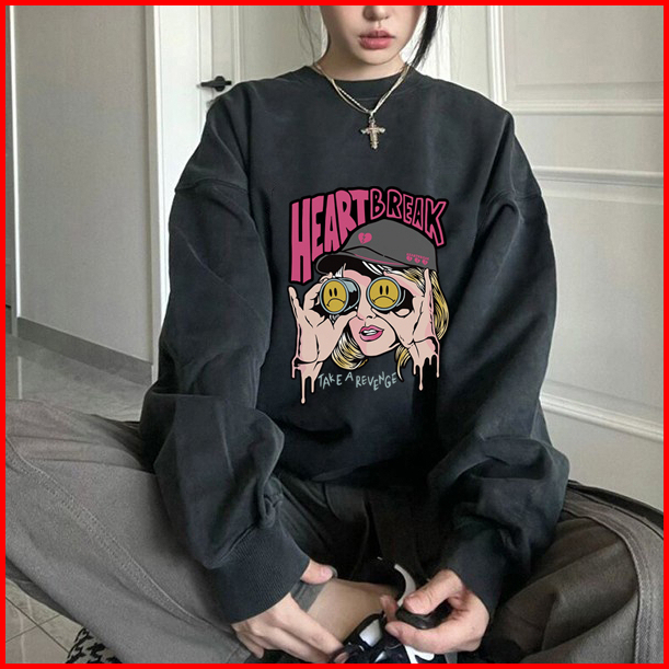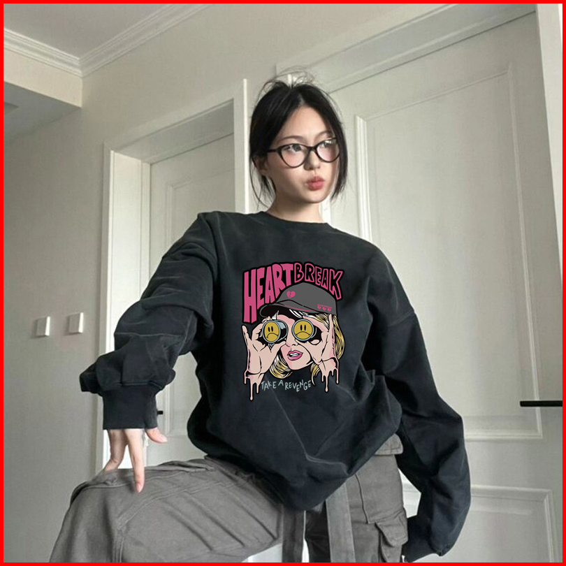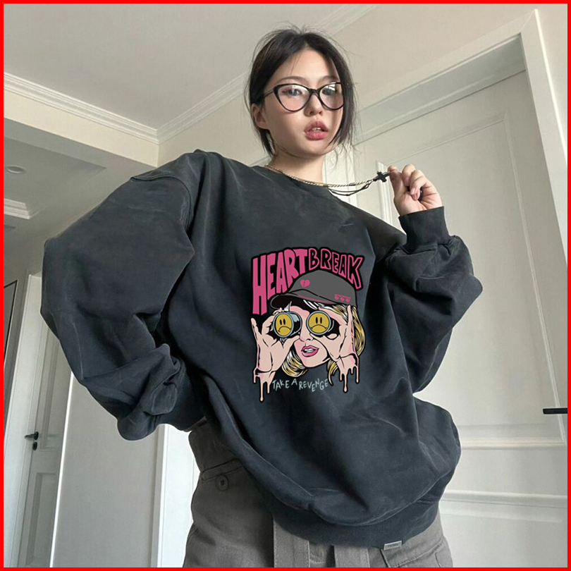 Cartoon Letter Sweter Wanita Korean Style Sweater Couple Oversize Atasan Kaos Wanita Lengan Panjang