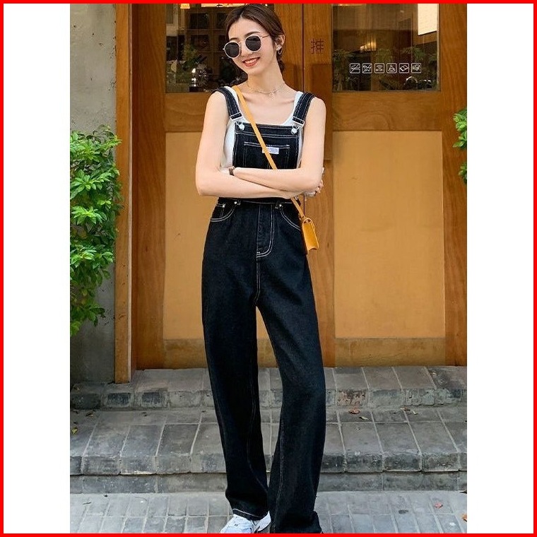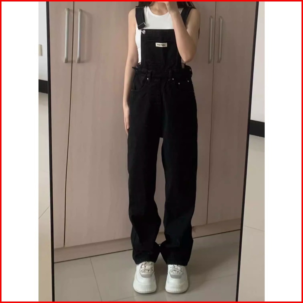 Overall Jumpsuit Kaki Lebar Longgar Pinggang Tinggi Gaya Korea Wanita Overal Jumpsuit Jeans Wanita Kprean Style Terbaru
