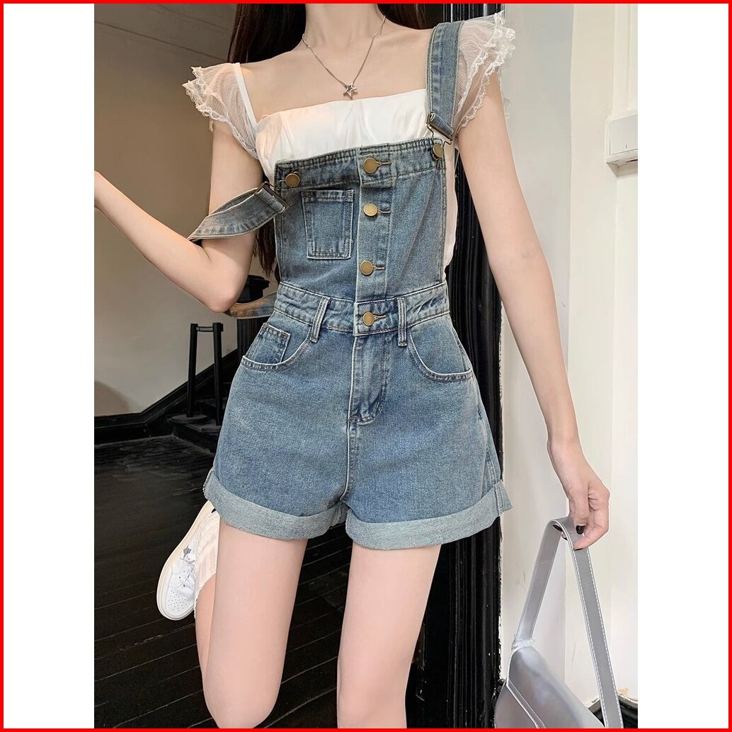 Sari Celana Pendek Dungaree Wanita Gaya Vintage 088
