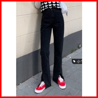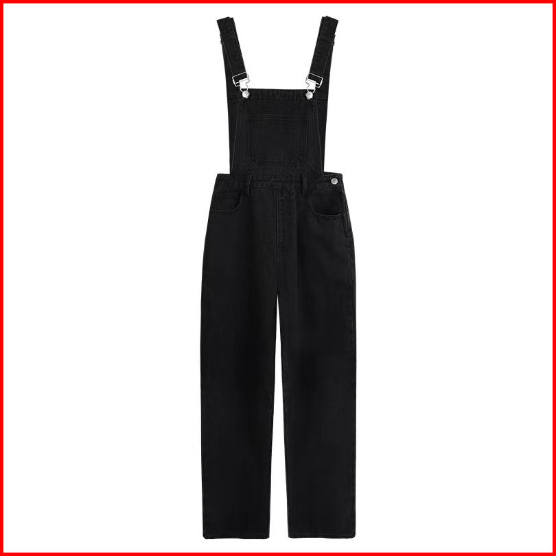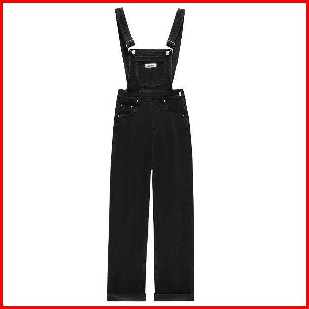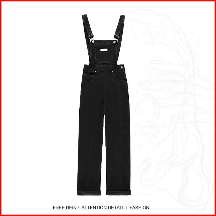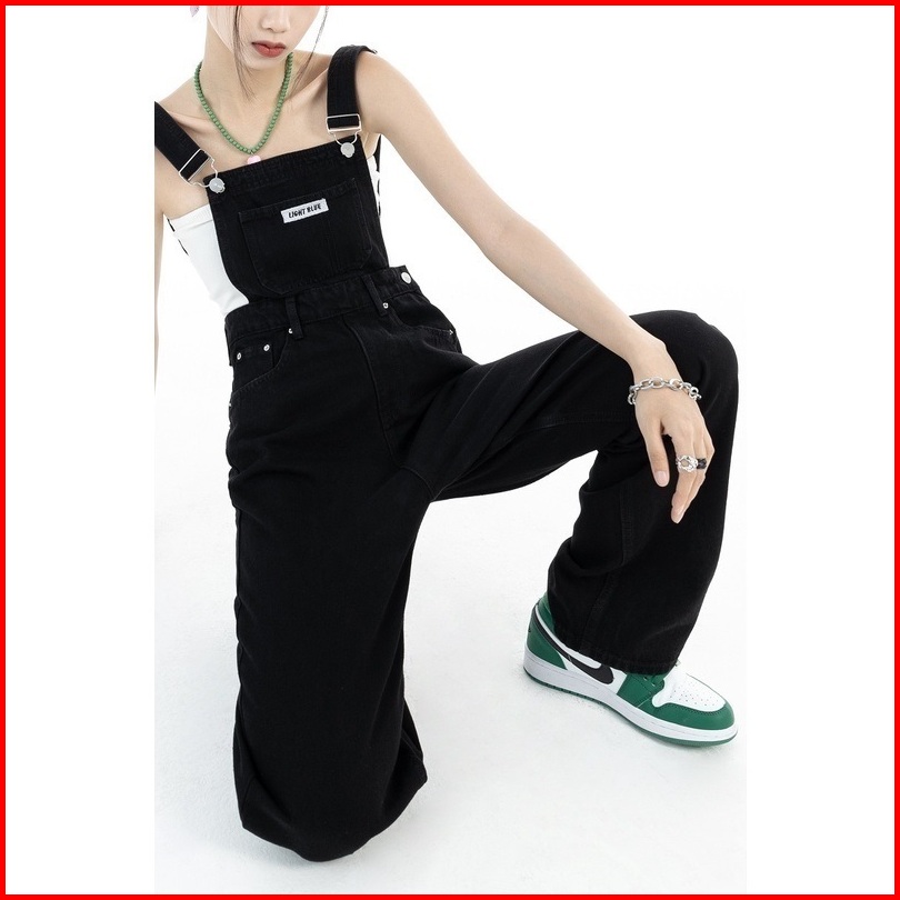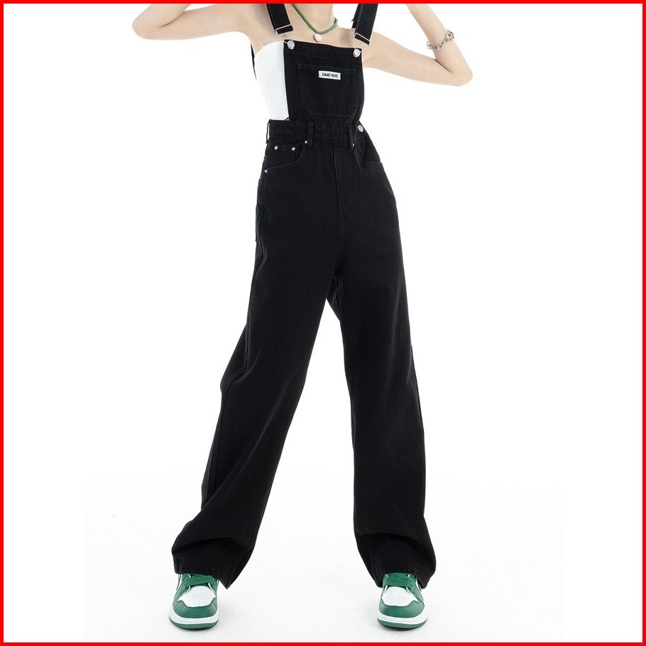 Forteid Korea Wanita Celana Overall Hitam Kaki Lebar Longgar Pinggang Tinggi Gaya Korea Wanita Celana Kodok Jeans Wanita