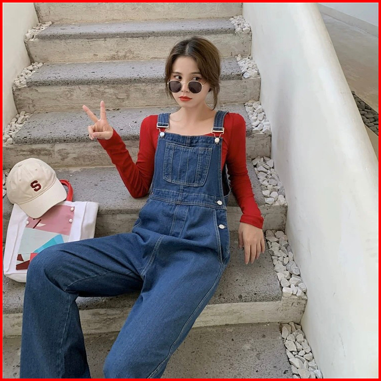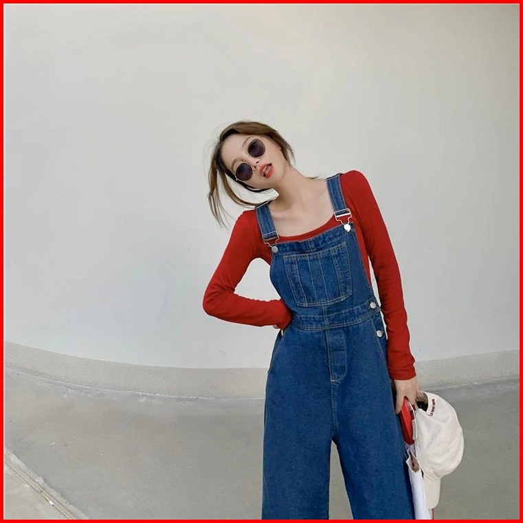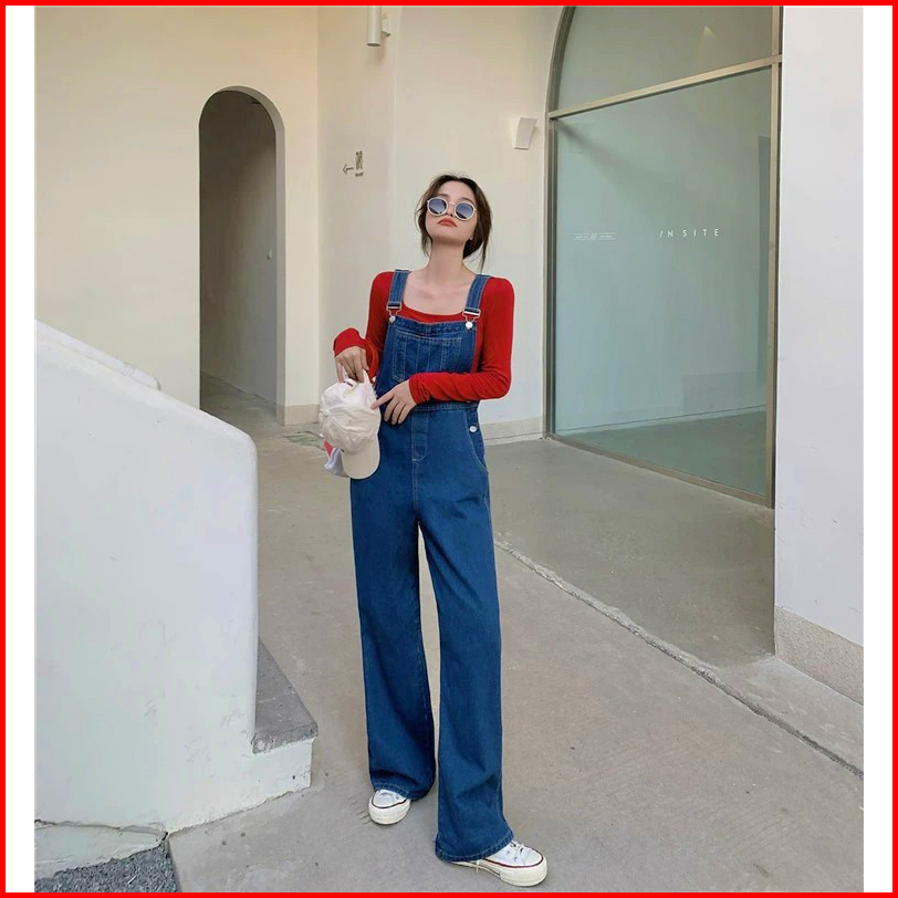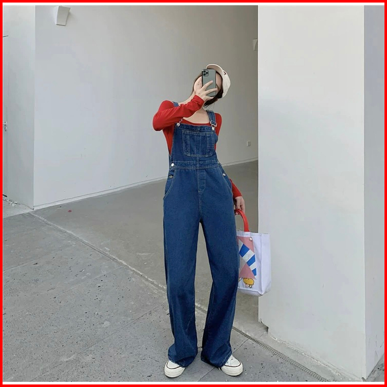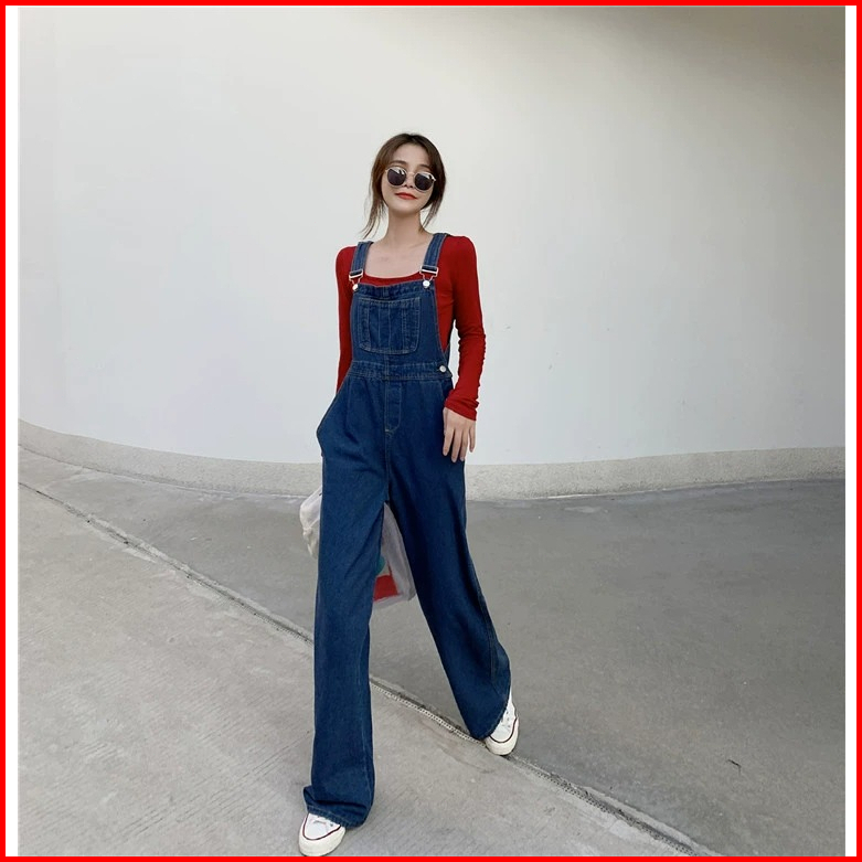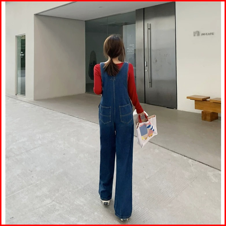 Ct Jeans Overall Kaki Lebar Longgar Pinggang Tinggi Gaya Korea Wanita Celana Kodok Jeans Wanita