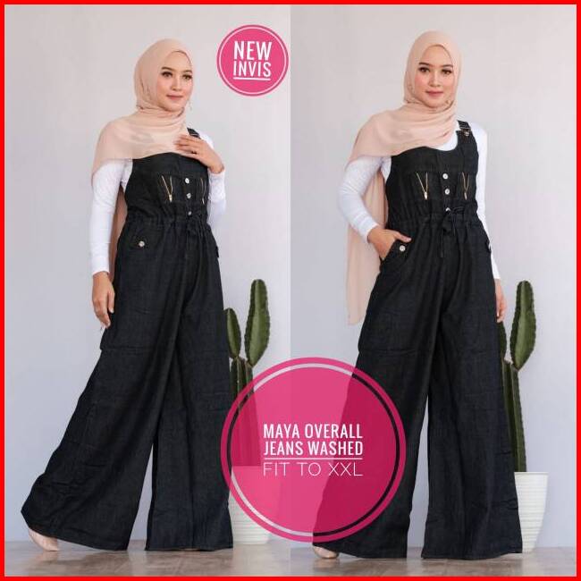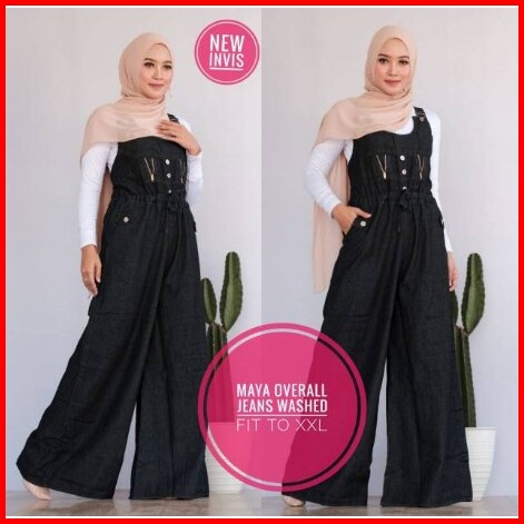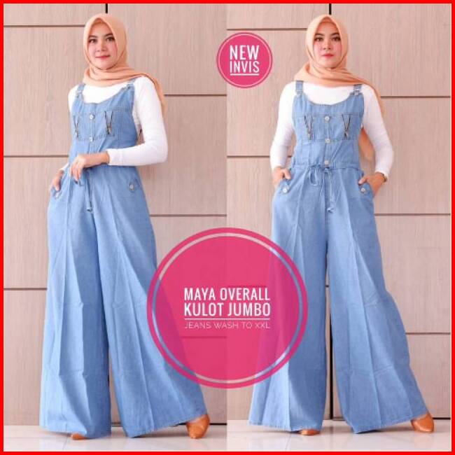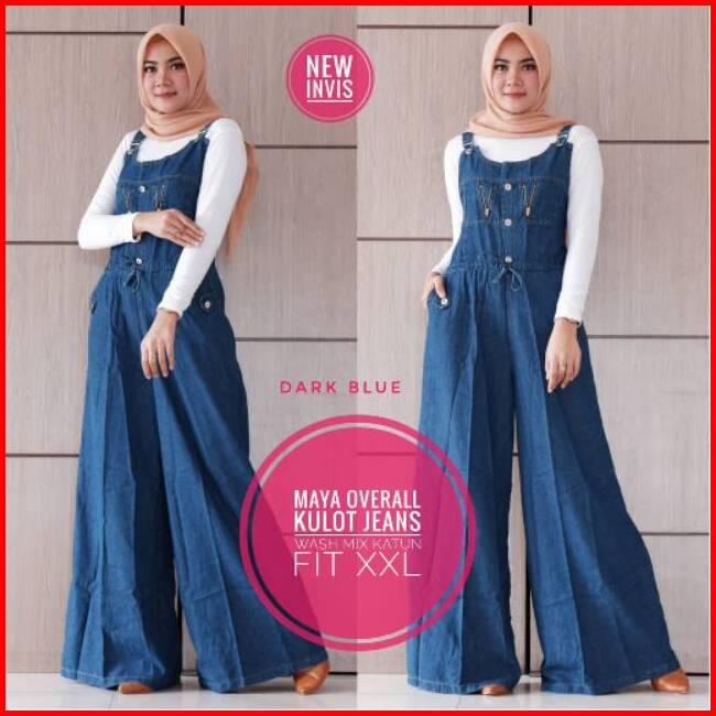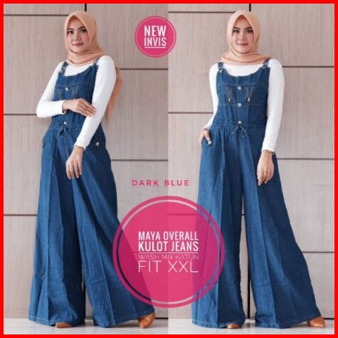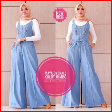 Overall Jeans Wanita Jumbo Terbaru Size Xxl Bawah Kullot Lebar Suspender Bisa Diatur Recommended
