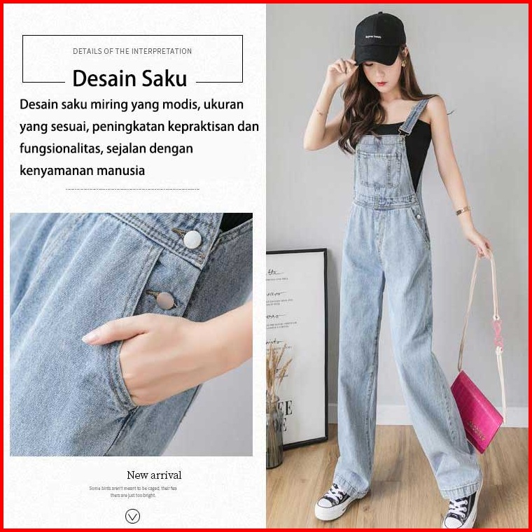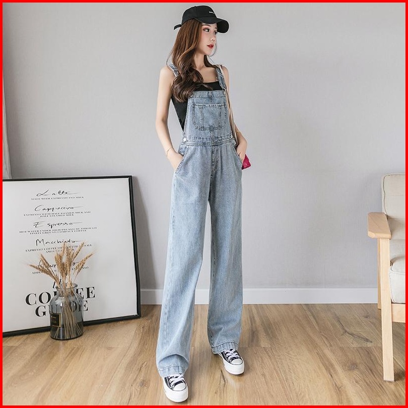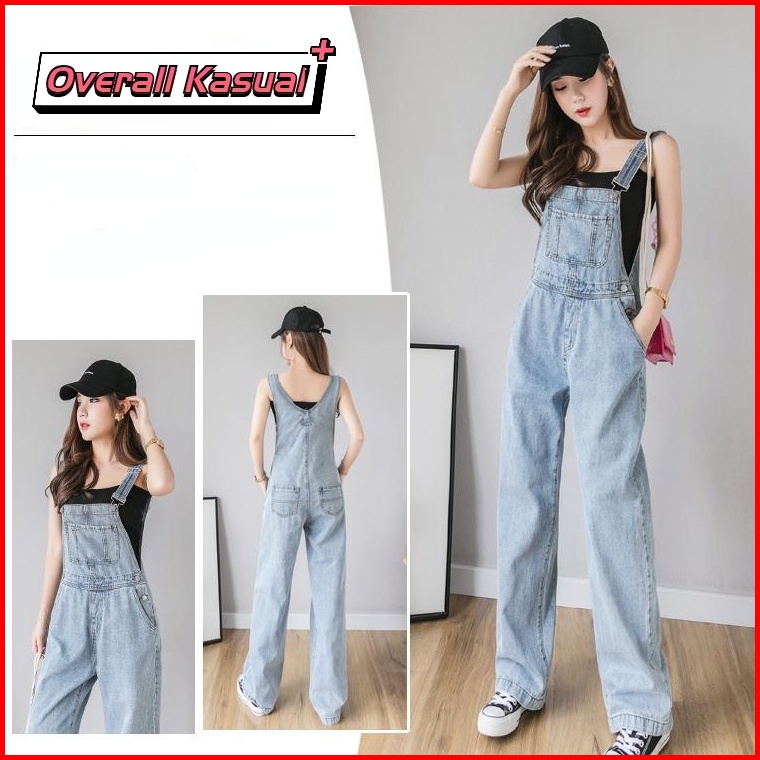 Overall Kaki Lebar Longgar Pinggang Tinggi Gaya Korea Wanita