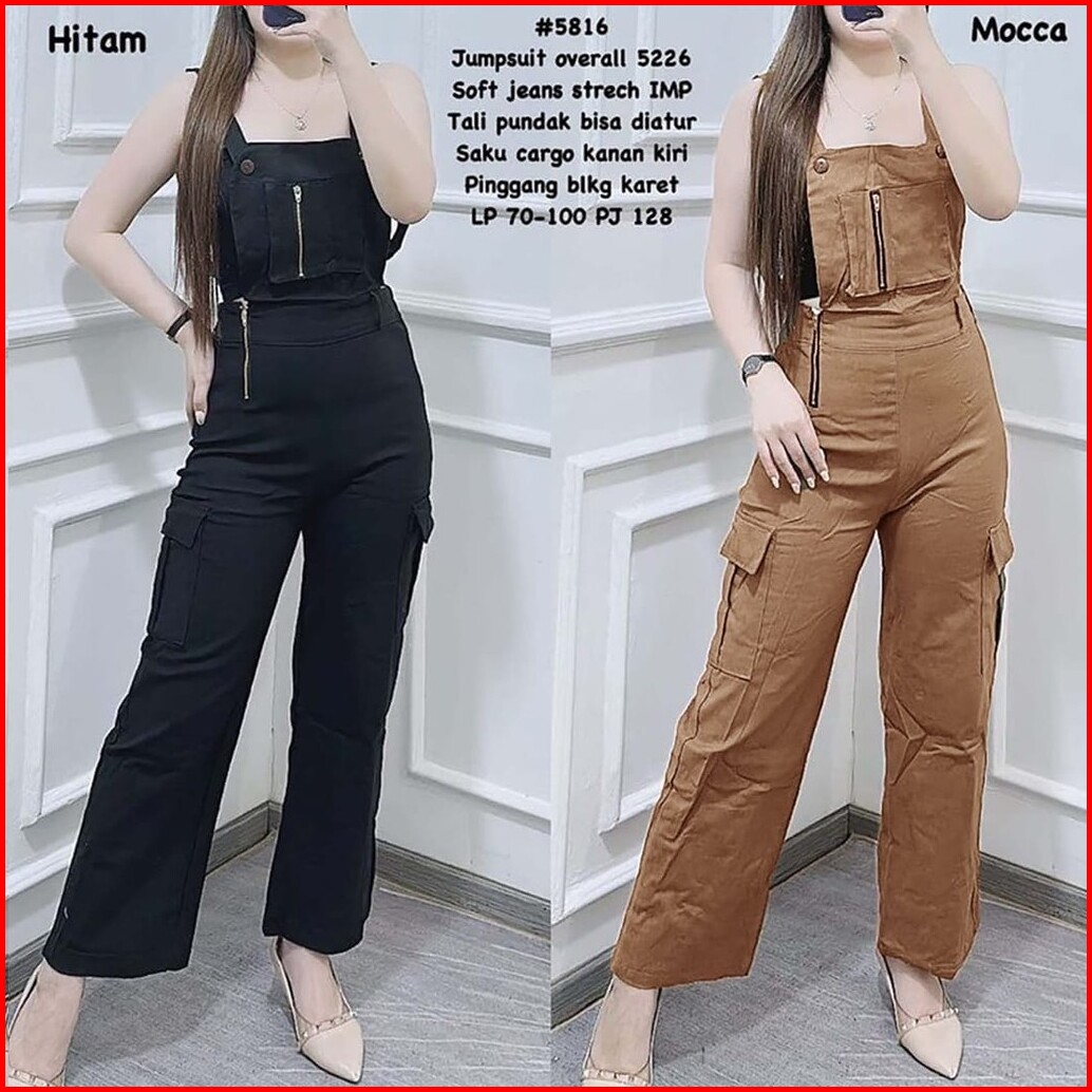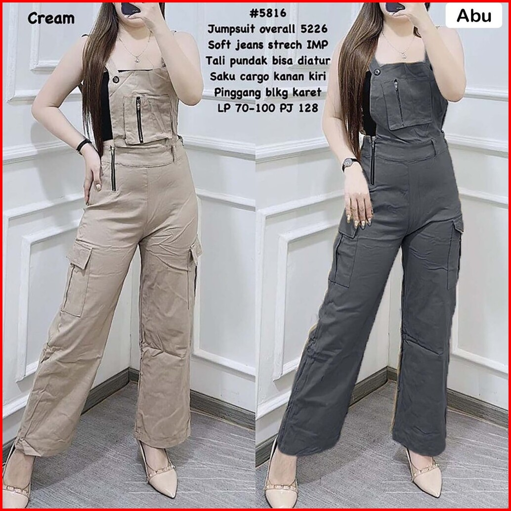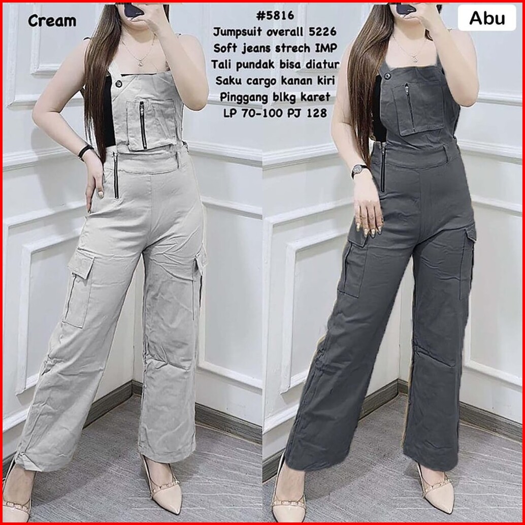 Misela Jumpsuit Cargo Resleting Korean Style Twill