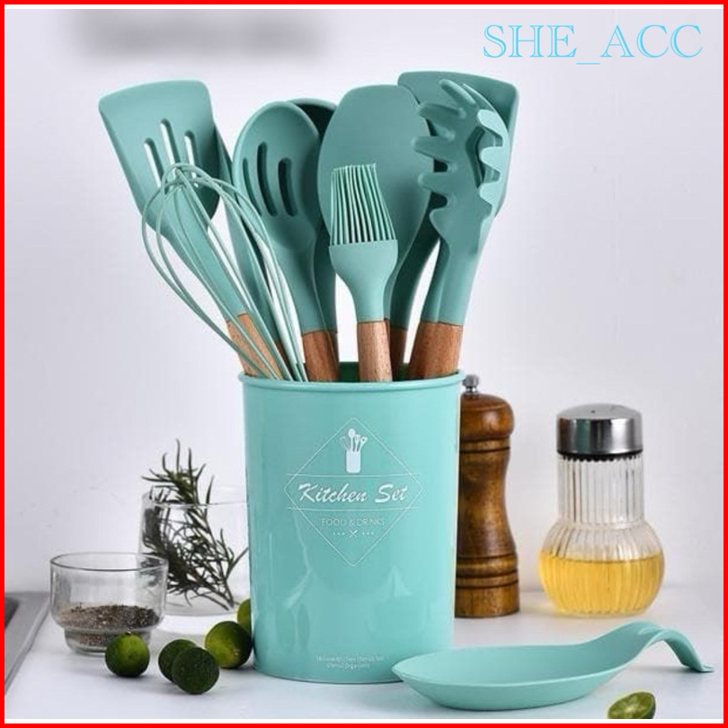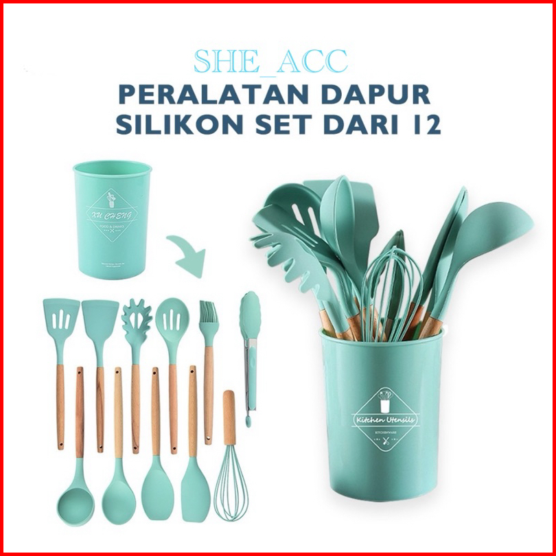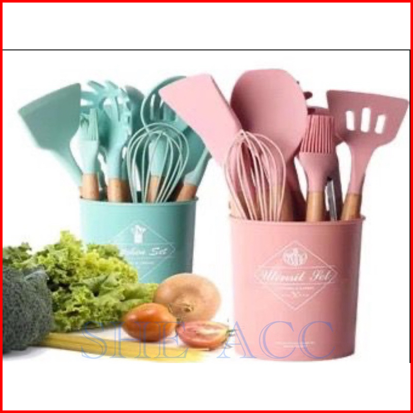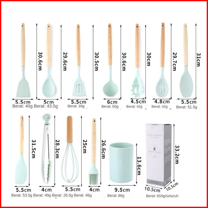 Silicon Spatula Set 12in1 Peralatan Alat Dapur Masak 12 Pcs Anti Panas