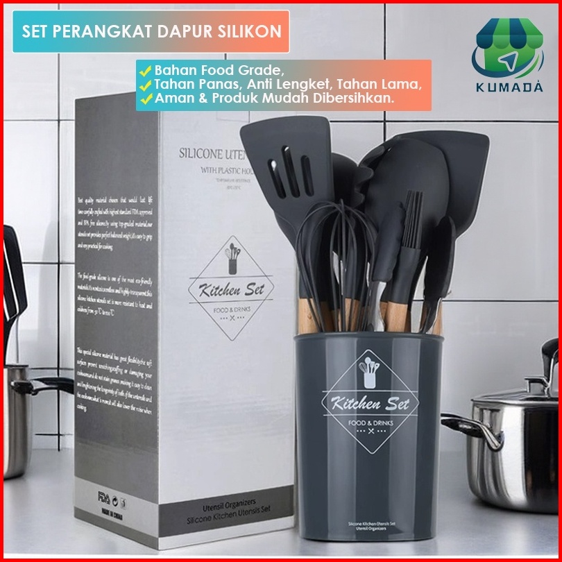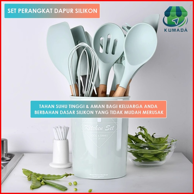 Silikon Spatula 12 Buah Set Non-stick Pan Khusus Rumah Tangga Memasak Sekop Spatula Sendok Sup Sekop Anti Bocor Food