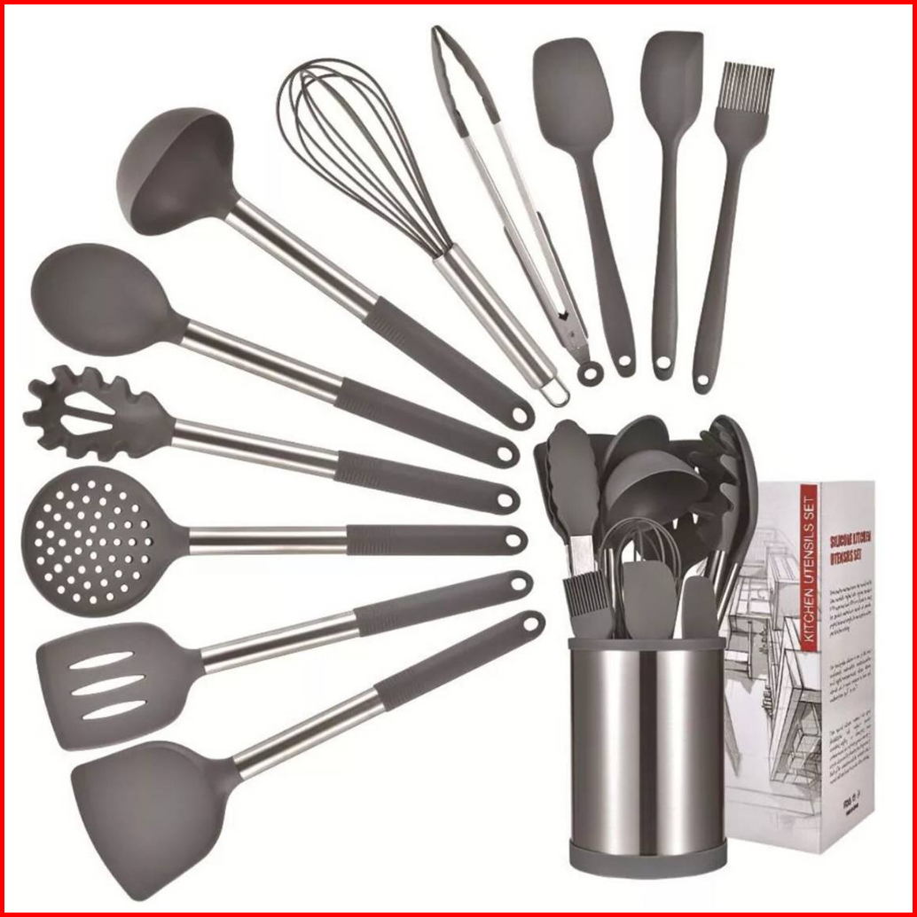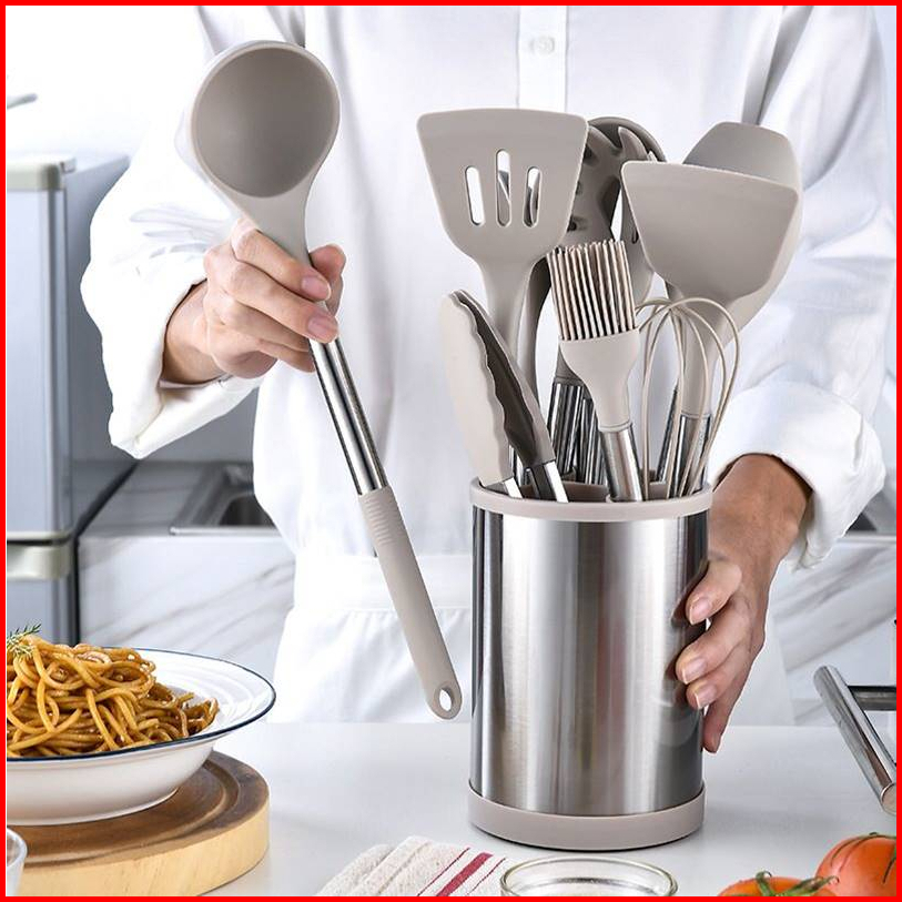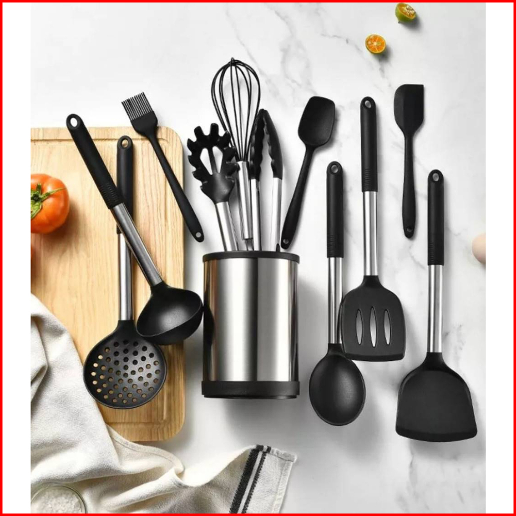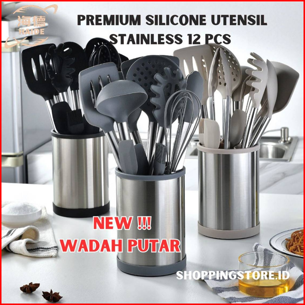 Spatula Premium Set 12pcs Putar 360 Sutil Silikon Alat Masak Utensil Premium Kitchen Full Set