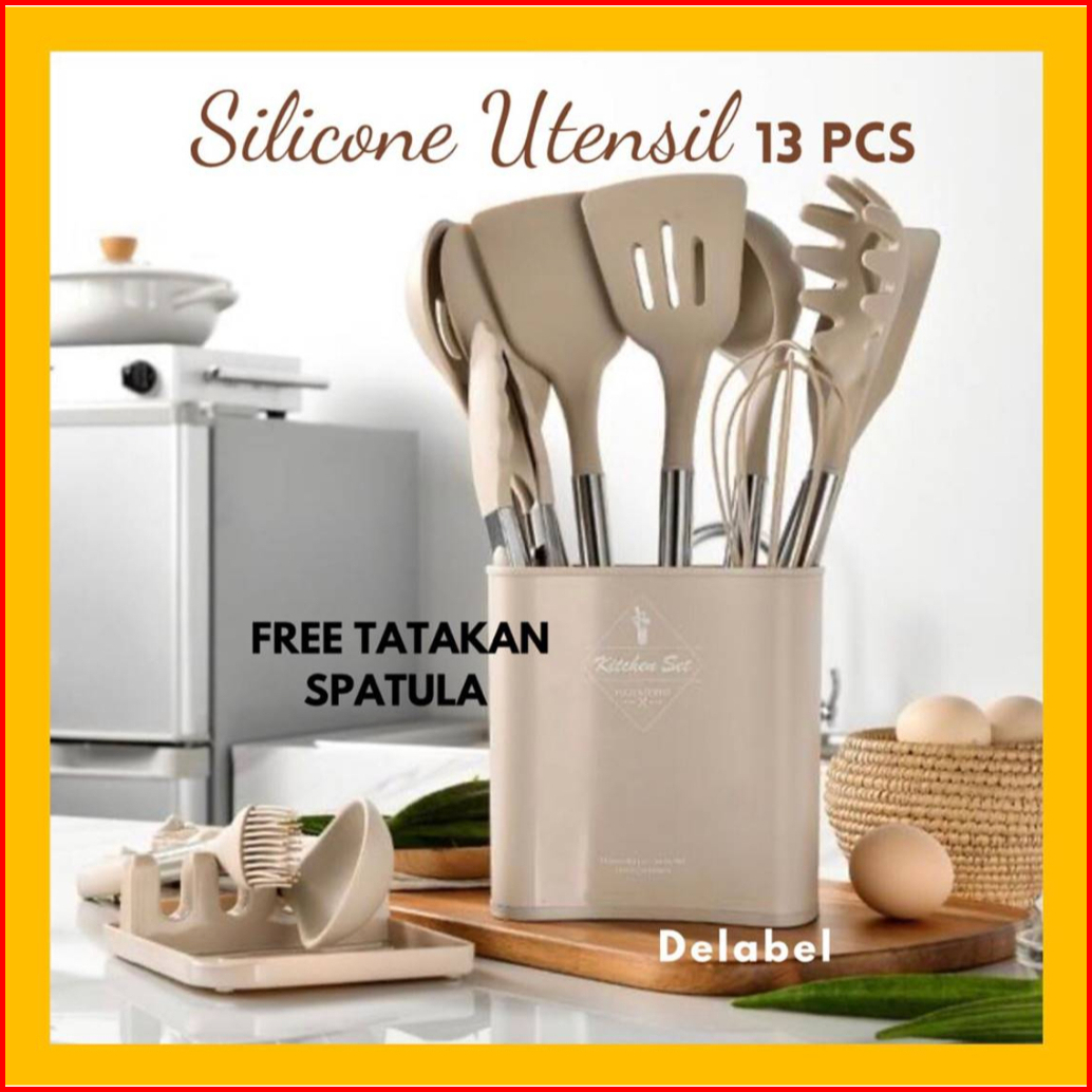 Square Bucket Utensil Set 13pcs Spatula Peralatan Masak Silicone Utensil Set Kitchen Set Spatula Sutil Silikon Set 13pcs