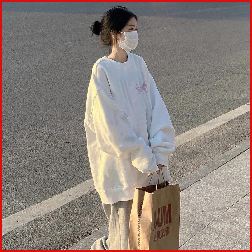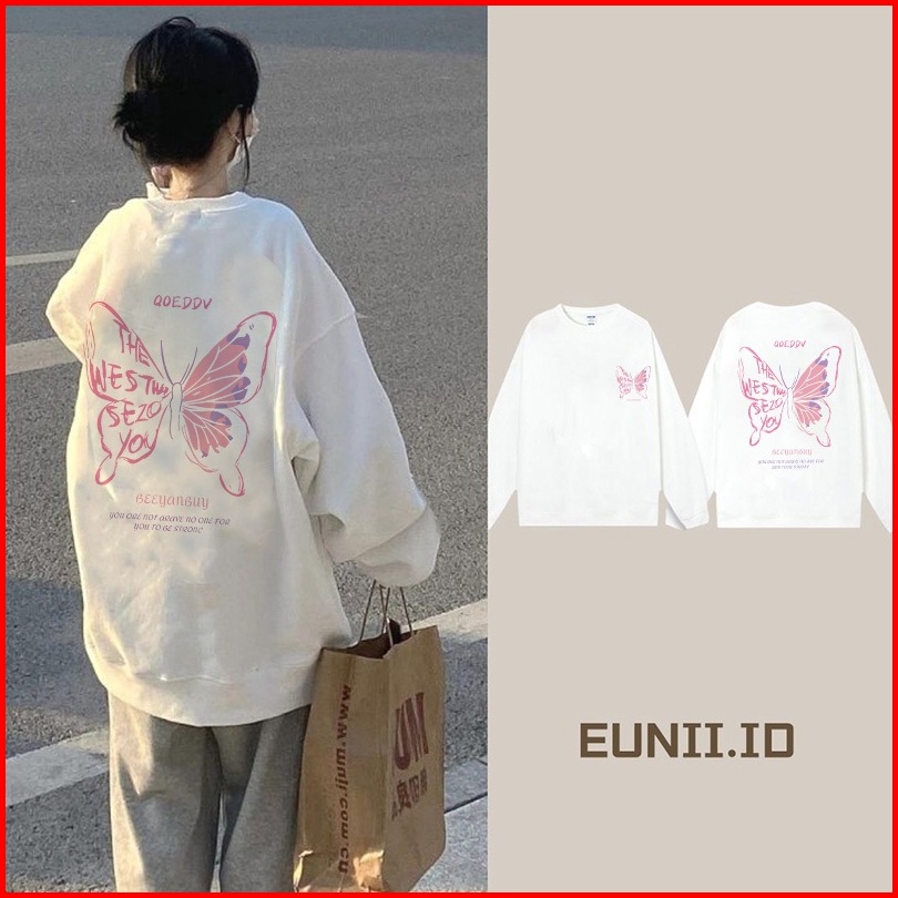 Eunii Sweater Wanita Kupu-kupu Sweater Lengan Panjang Model Versi Korea Pakaian Wanita Sweater Wanita Switer Oversize
