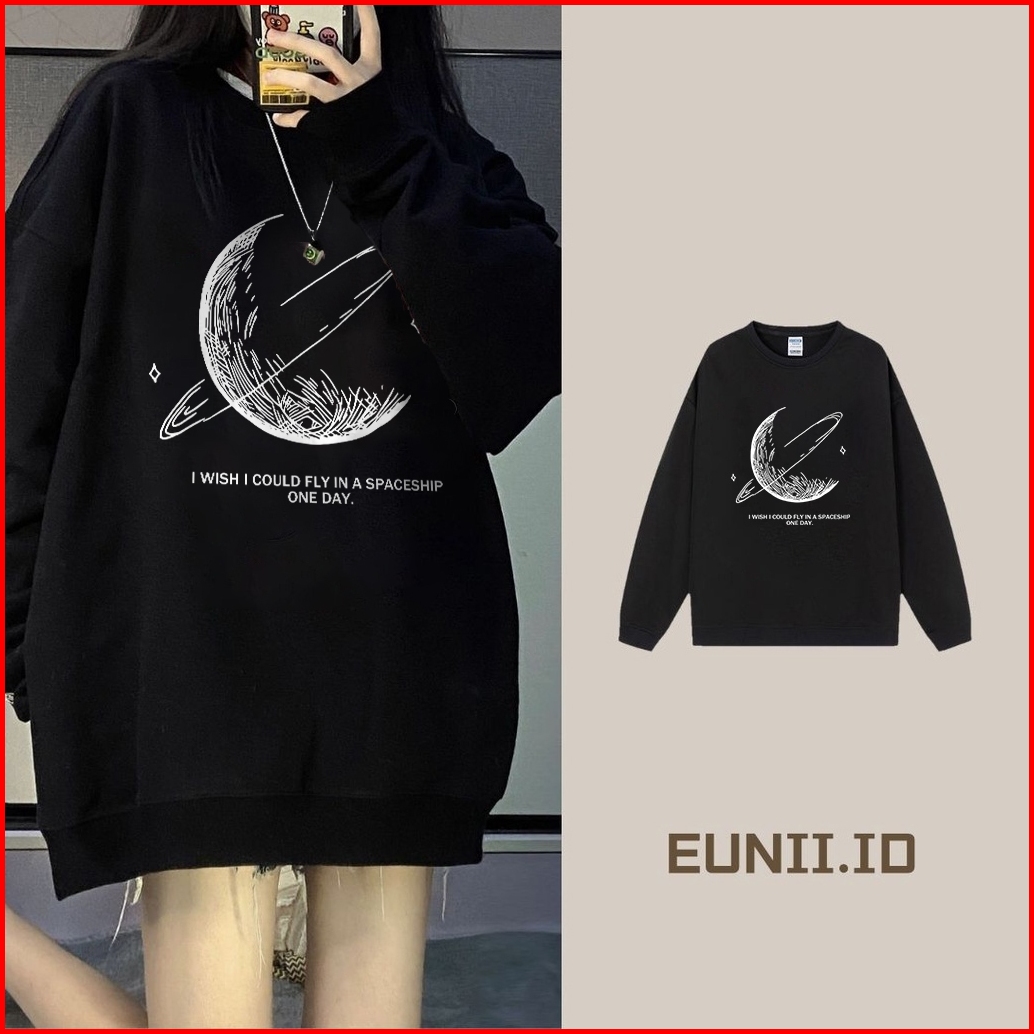 Eunii Sweater Wanita Fun Slogan Pattern Sweater Lengan Panjang Model Versi Korea Pakaian Wanita Sweater Wanita Switer Ov