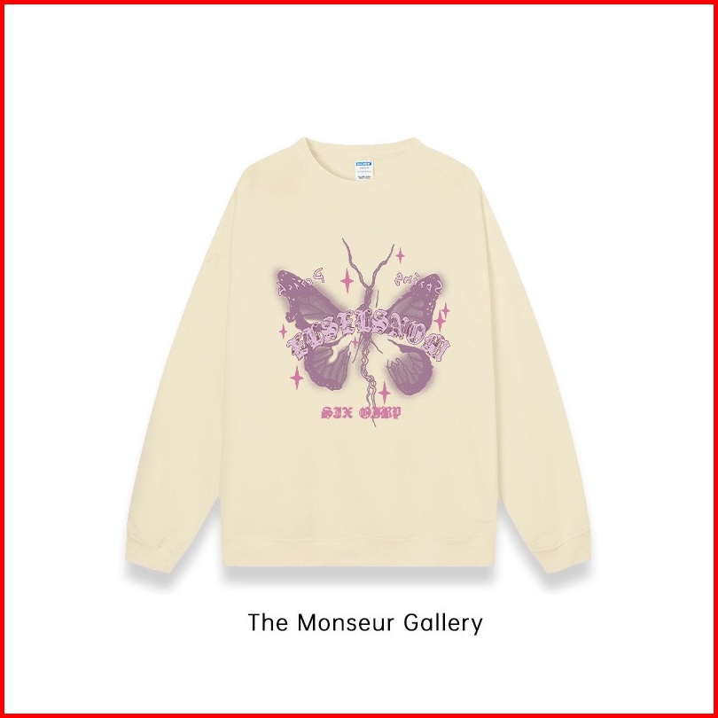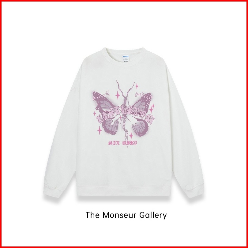 The Monseur Gallery Sweater Wanita Oversize Korean Style Butterfly Switer Putih