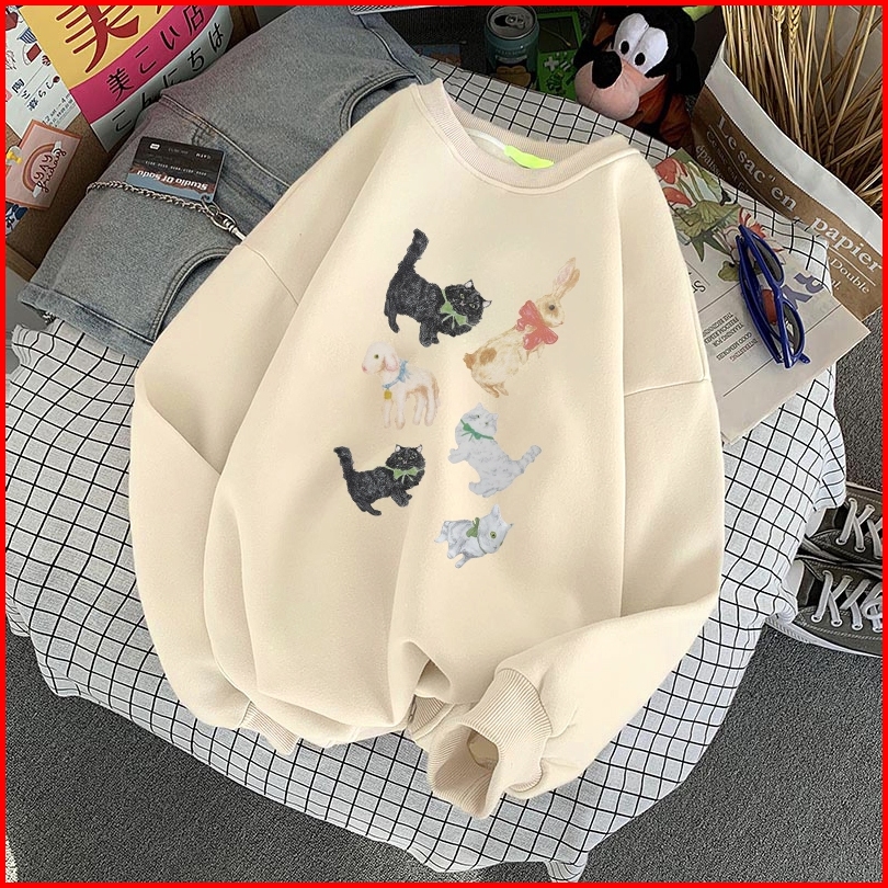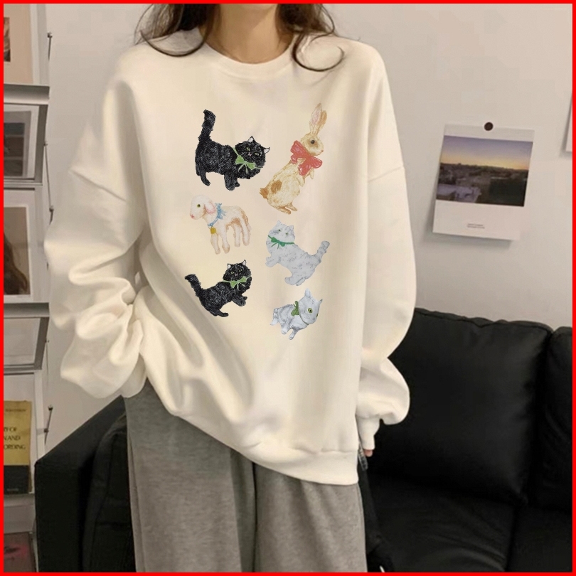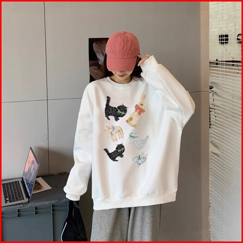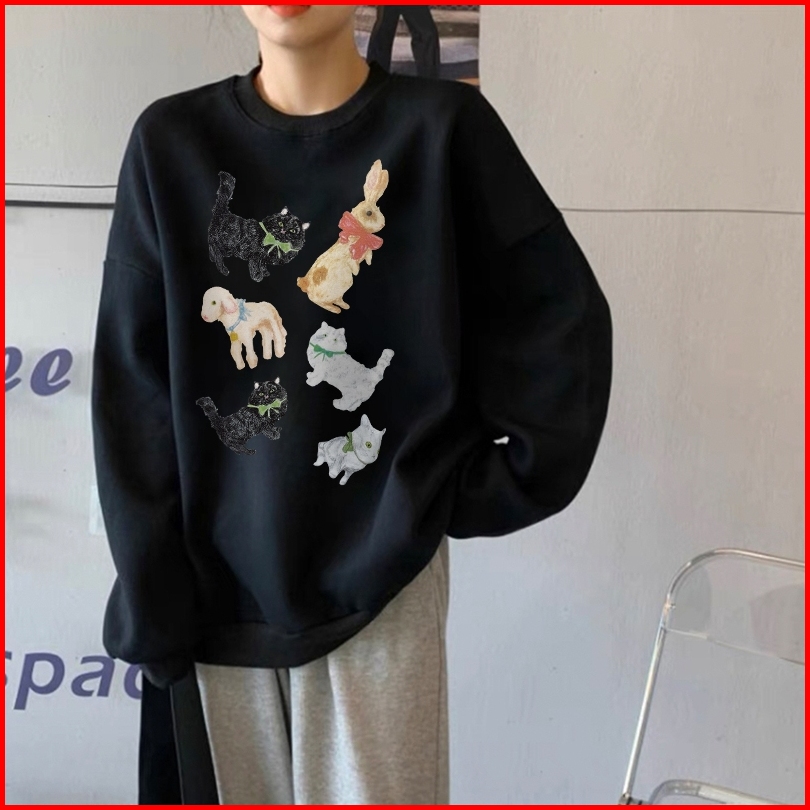 Forteid Sweater Lengan Panjang Oversized Street Style Korean Style Switer Wanita Oversize Kaos Pola Hewan Kecil Korean S