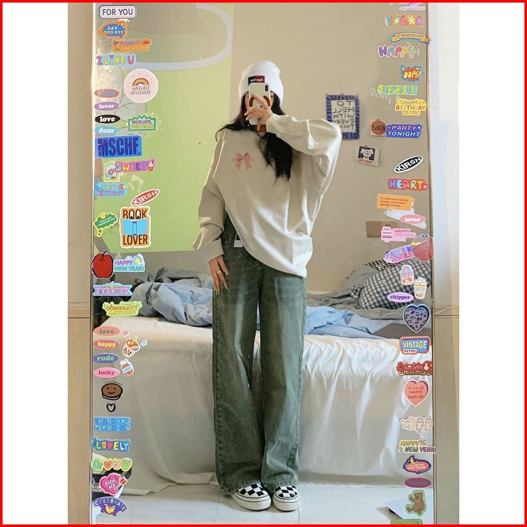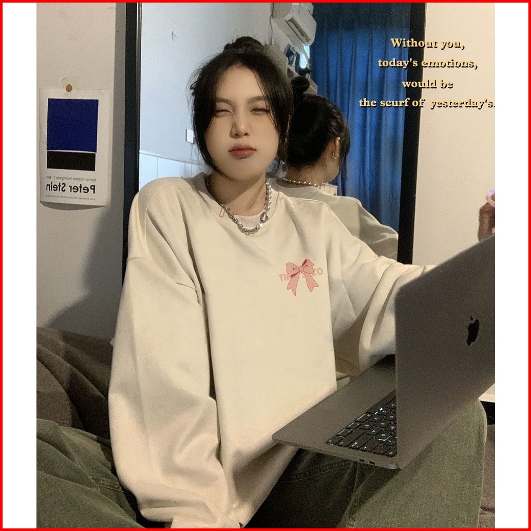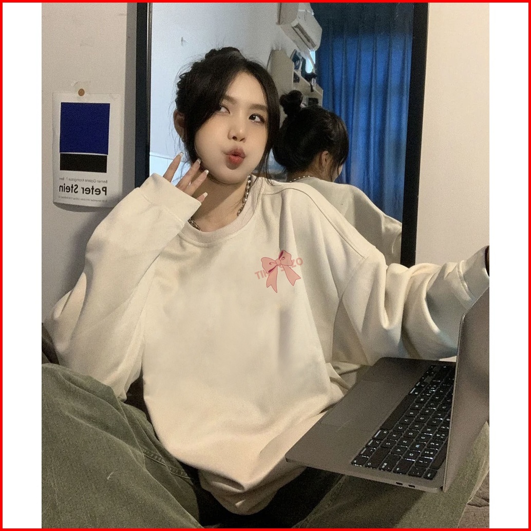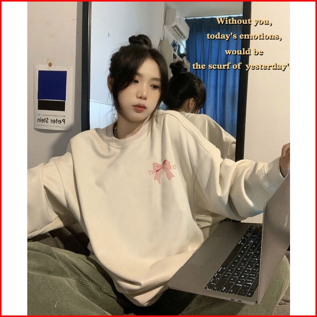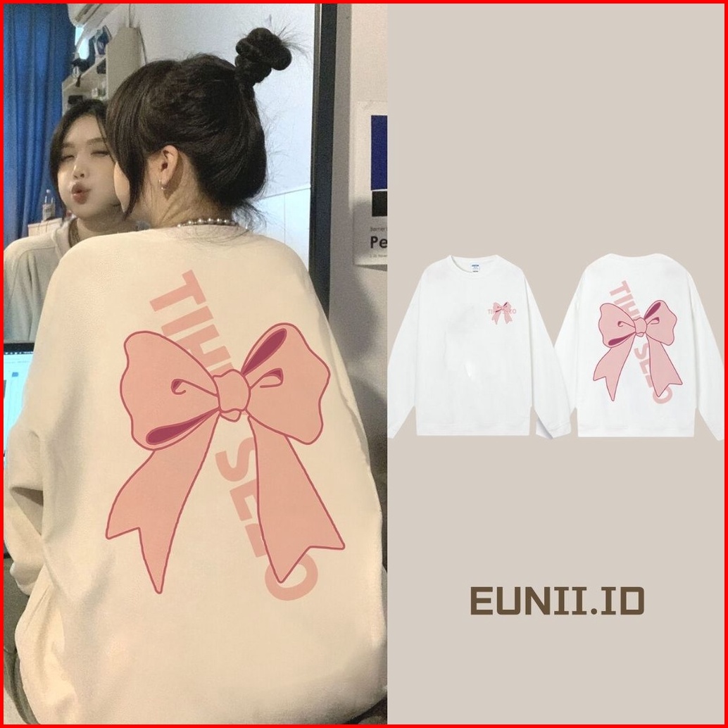 Eunii Sweater Lengan Panjang Oversized Bow Korean Style V Baju Wanita Switer Wanita