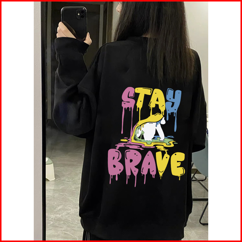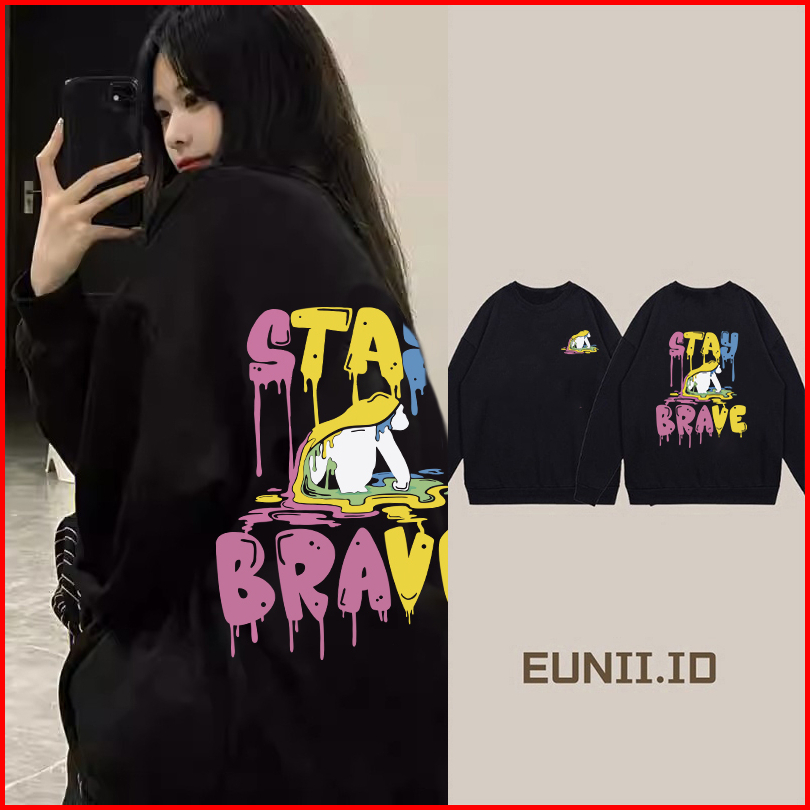 Eunii Sweater Lengan Panjang Stay Brave Korean Style Sweater Oversize Baju Wanita Switer Wanita Switer Street Style Kaos