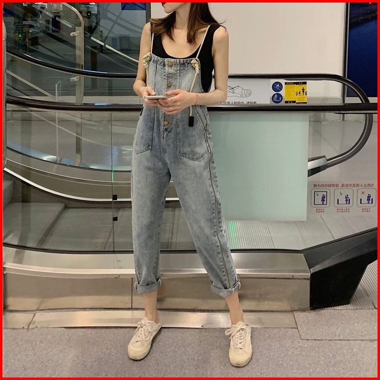 Celana Gantung Wanita Model Korea Yang Longgar Berketinggian