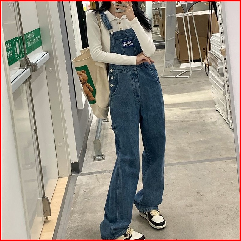 Sari Denim Overall Fashion Wanita Celana Lebar Kaki Celana Longgar 011