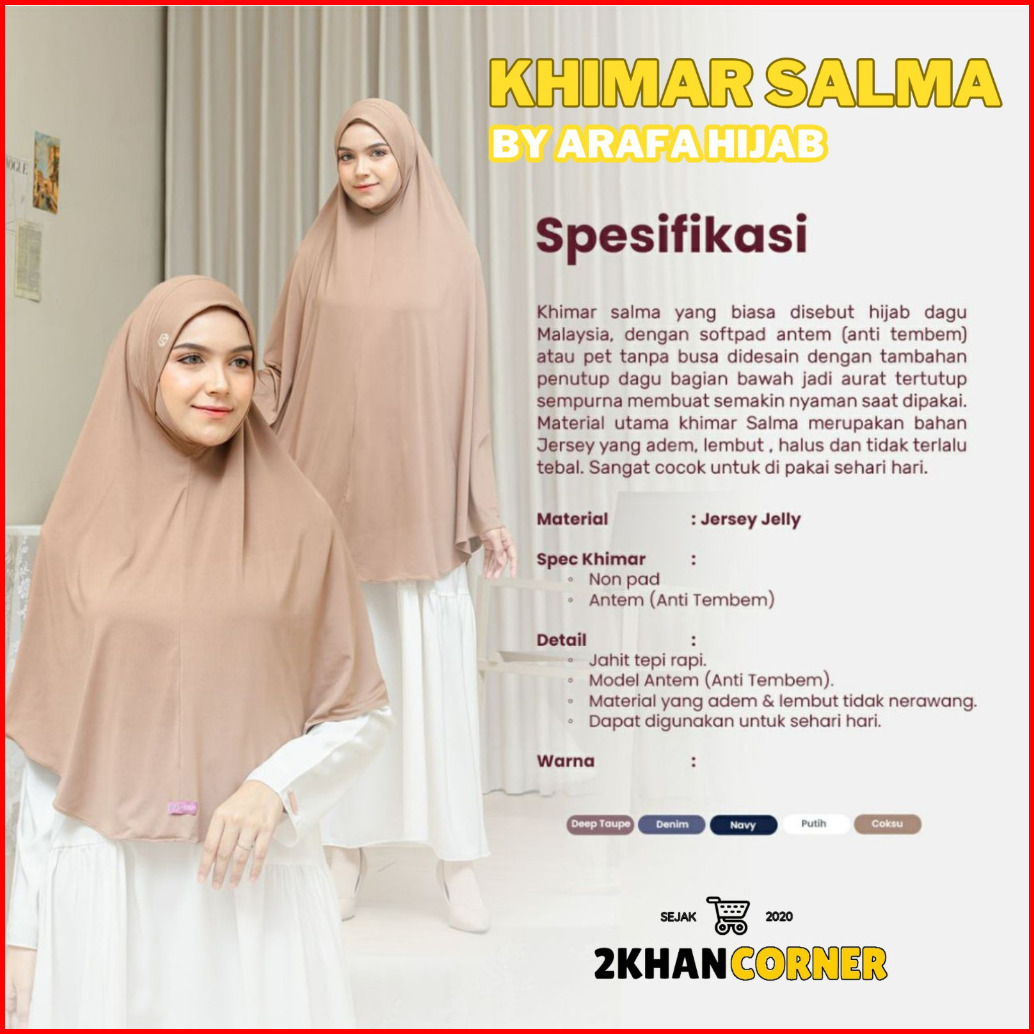 Ready Khimar Salma By Arafa Hijab Jilbab Bergo Syari Khimar Dagu Malay Kerudung