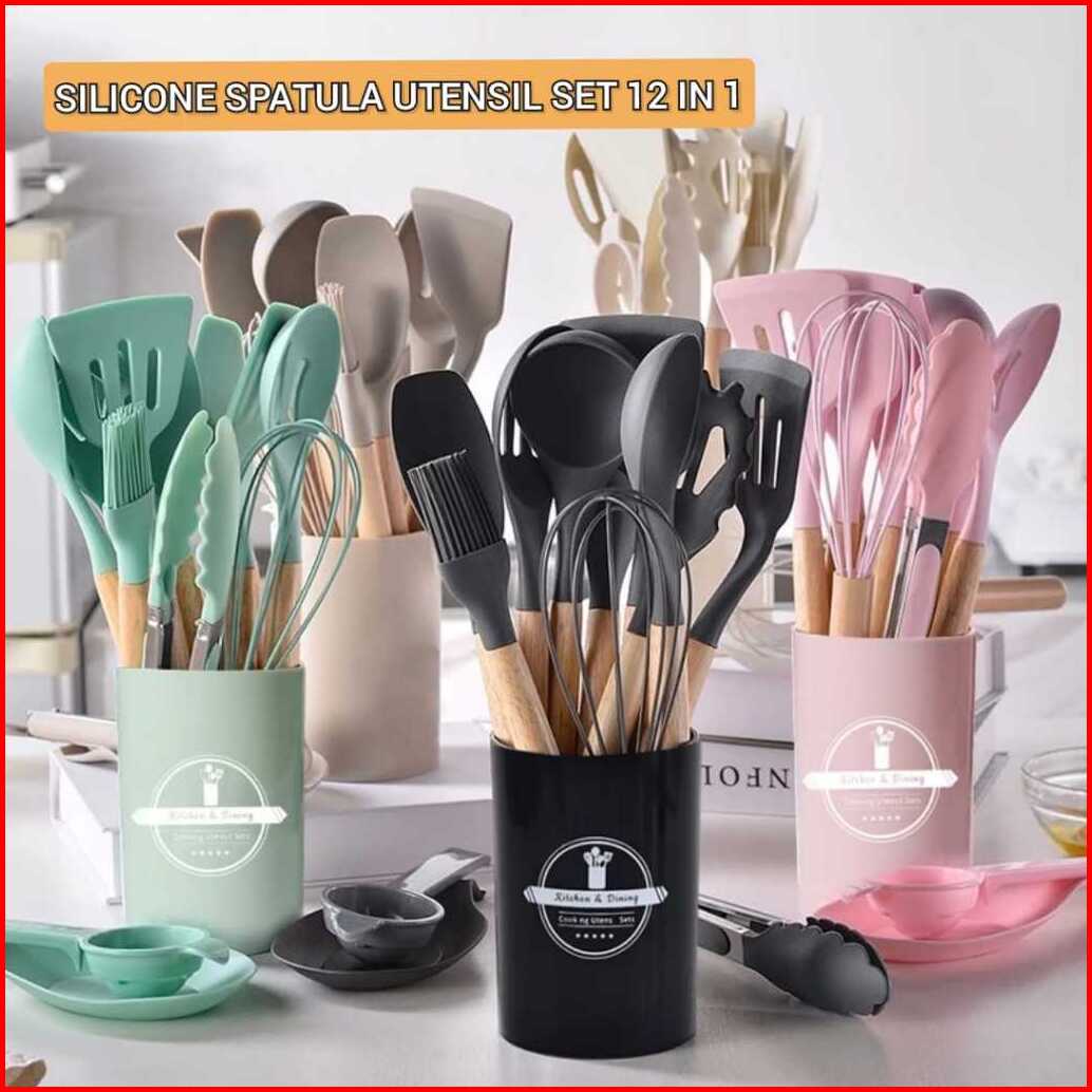 Silicon Spatula Utensil Set 12in1 Pld-16 12pcs Alat Masak Sehat Tahan Panas Silicone Kitchen Tools Set Spatula Silikon B