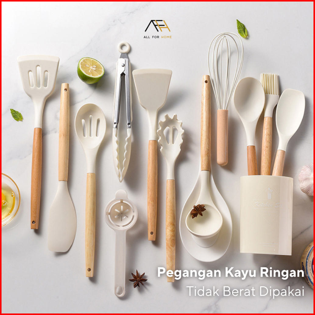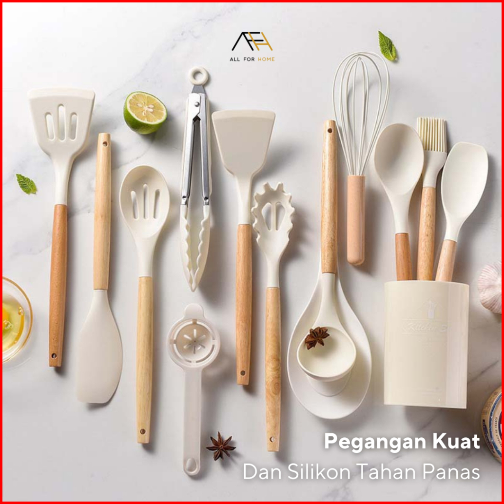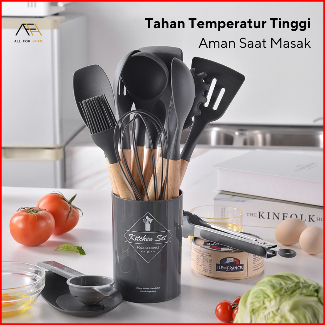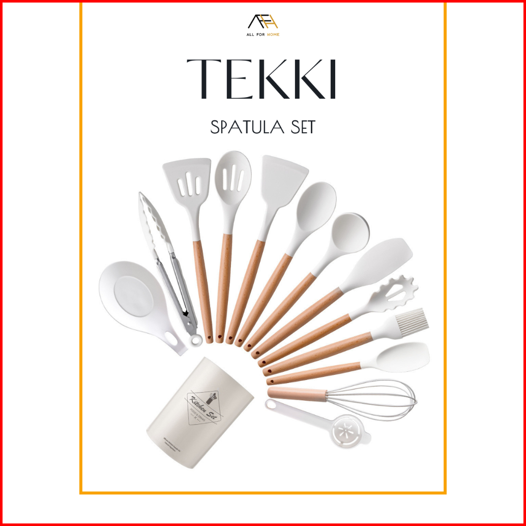 Afh Tekki Spatula Set Utensil 12 Pcs Dengan Wadah Peralatan Masak Sutil Tahan Panas