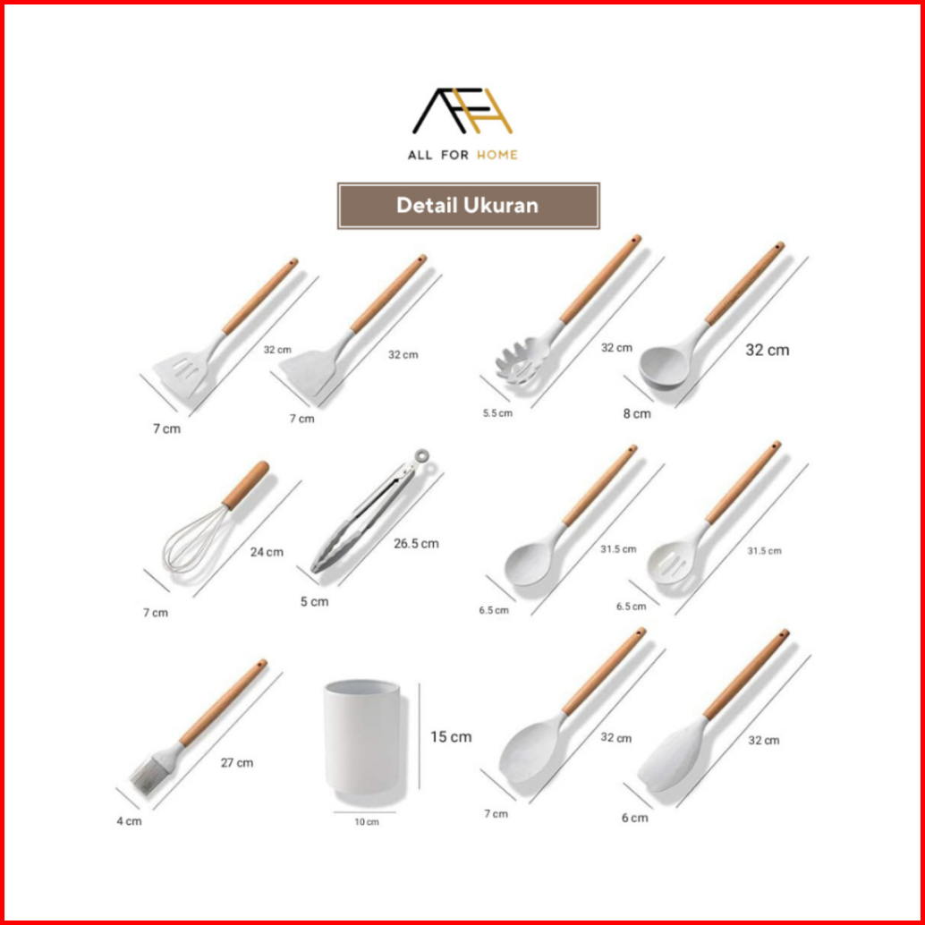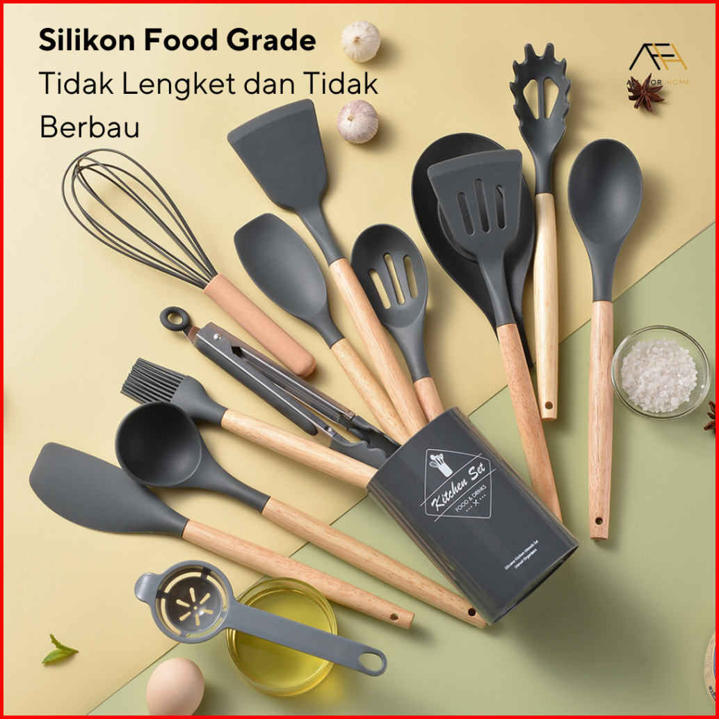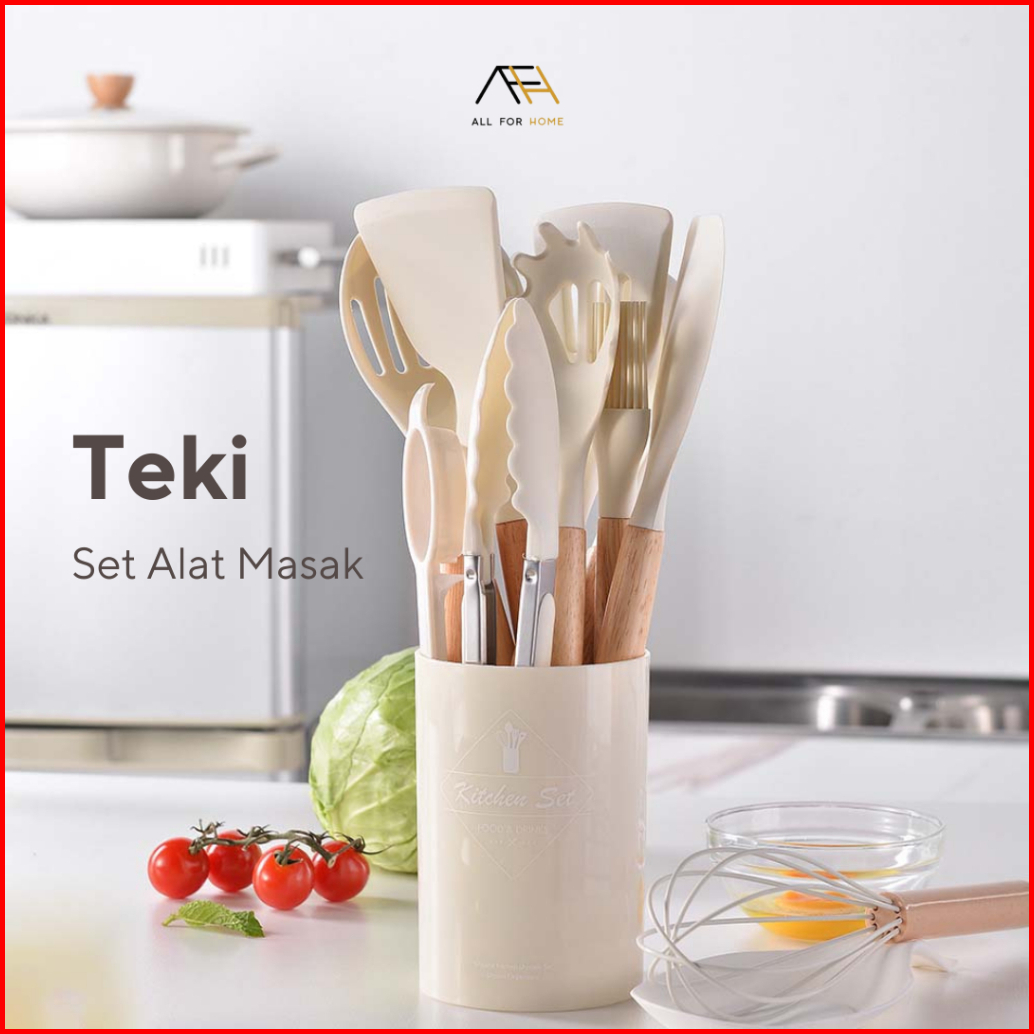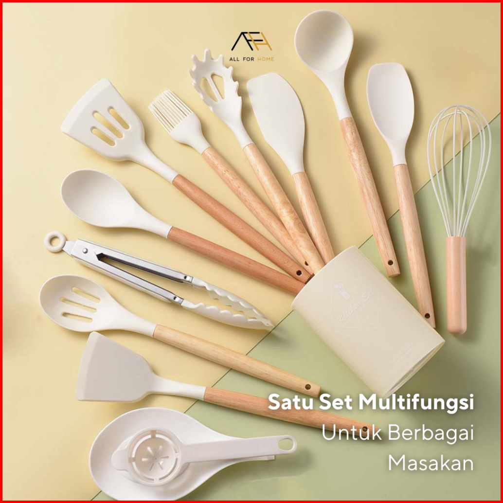 Afh Tekki Spatula Set Utensil 12 Pcs Dengan Wadah Peralatan Masak Sutil Tahan Panas