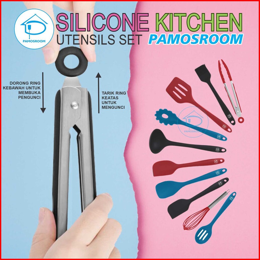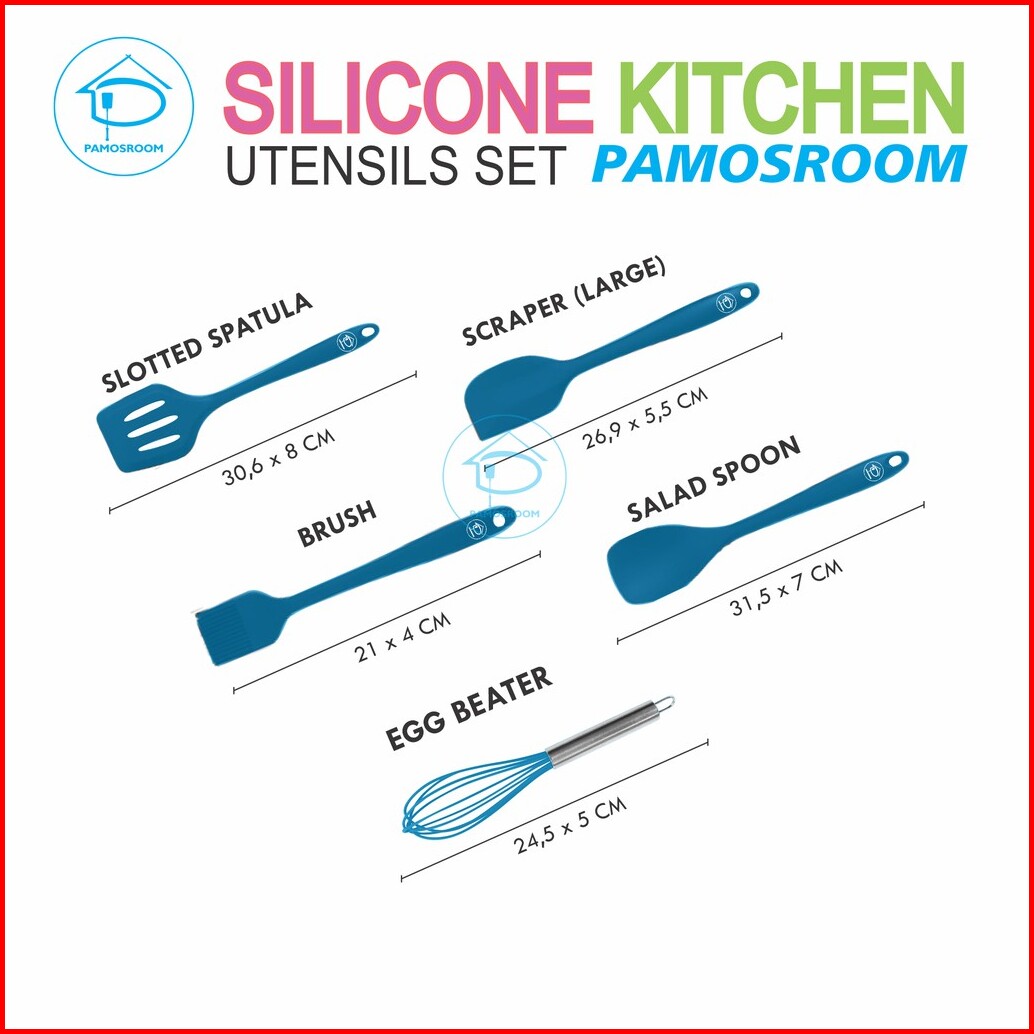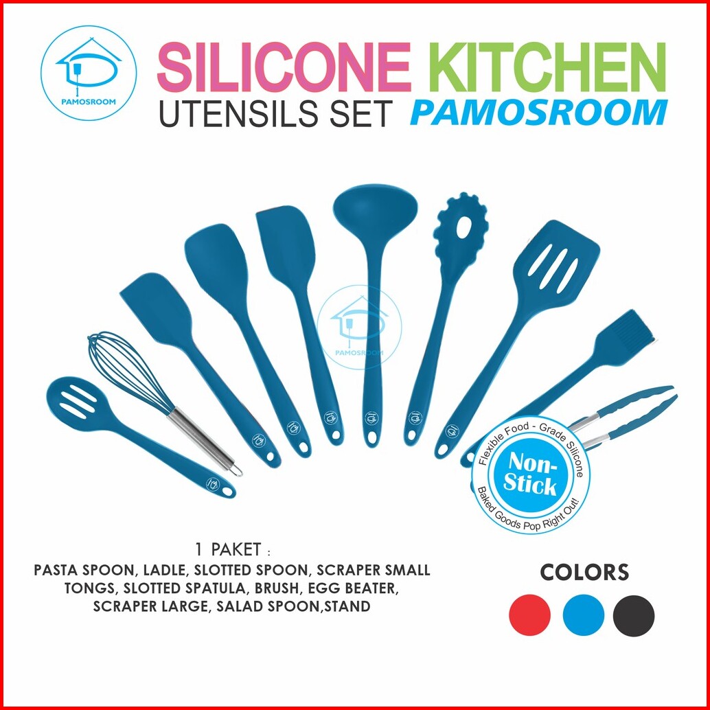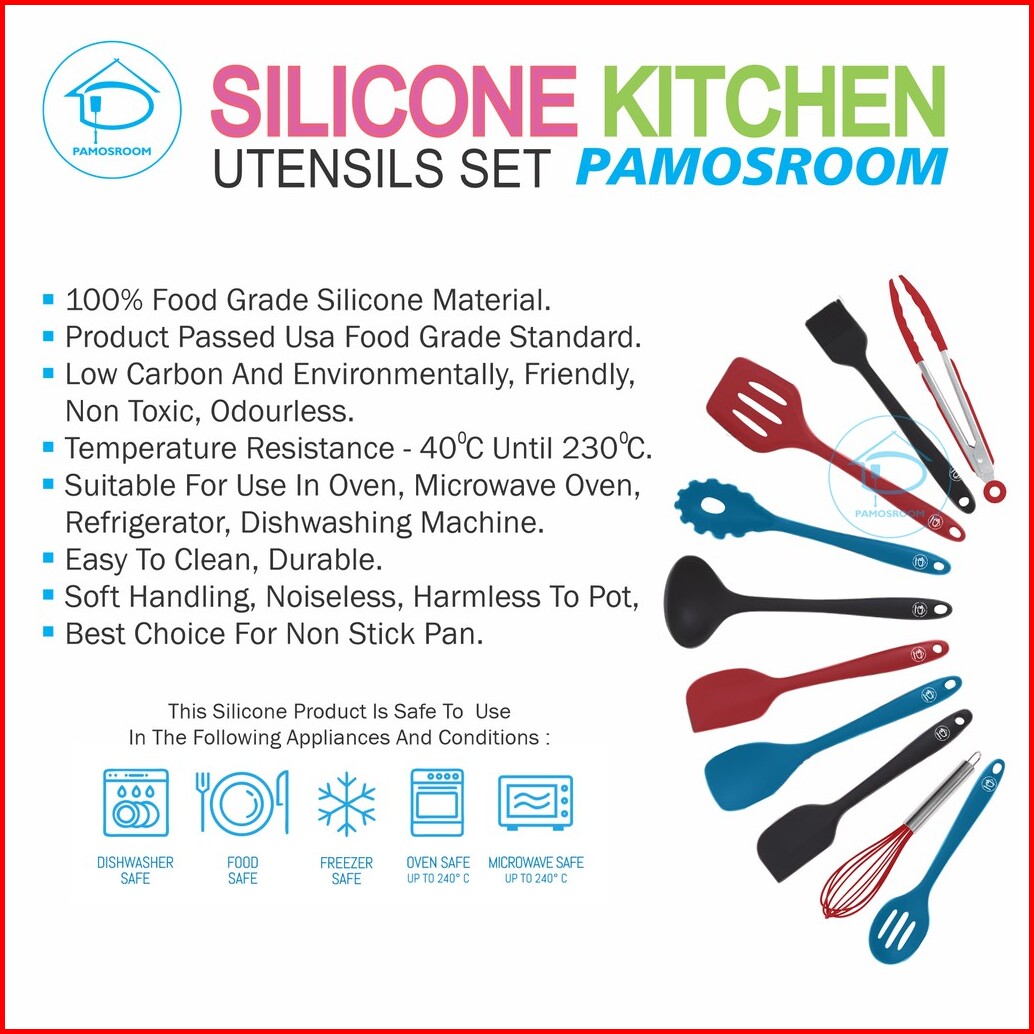 Pamosroom Silicone Kitchen Utensil 10 Pcs Spatula Silikon Free Holder Original Food Grade Bpa Free