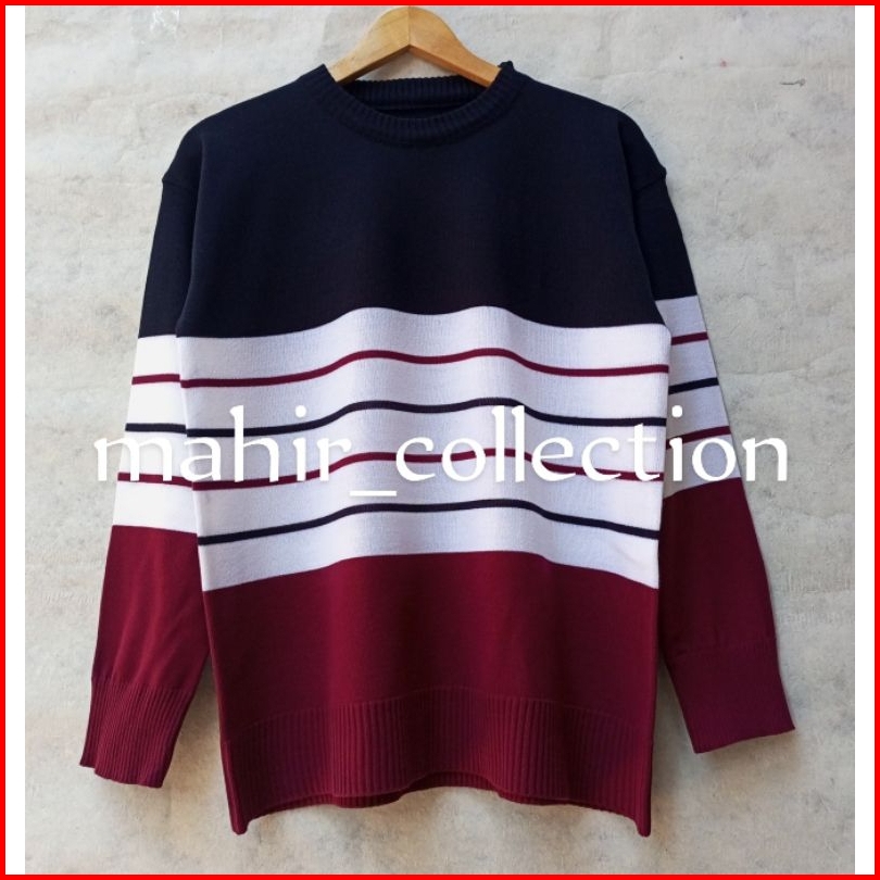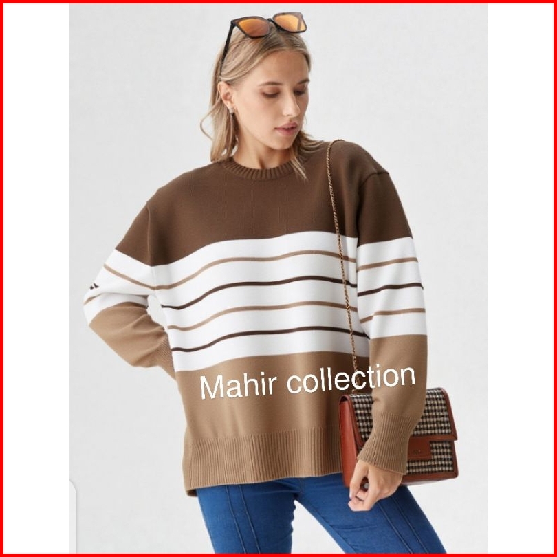 Tricolor Sweater Rajut Wanita Atasan Rajut Wanita Atasan Blus Sweater