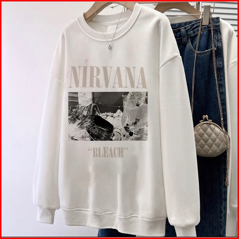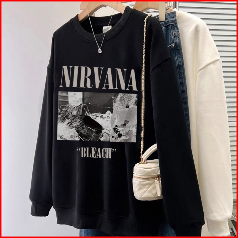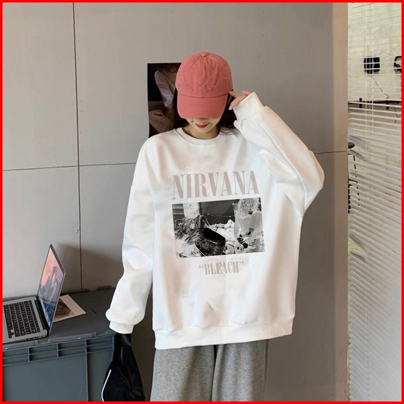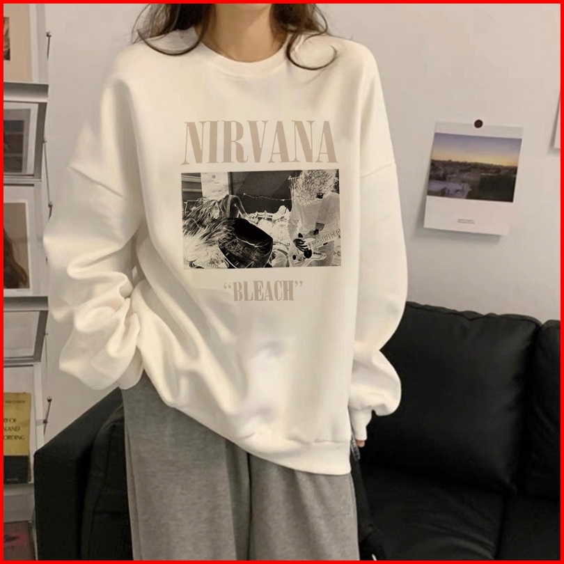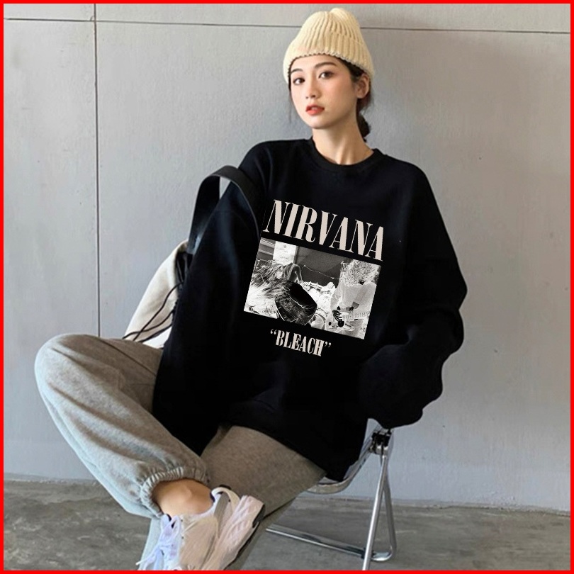 Forteid Sweater Lengan Panjang Oversized Street Style Korean Style Nirvana Pencetakan Switer Wanita Oversize Kaos Korean