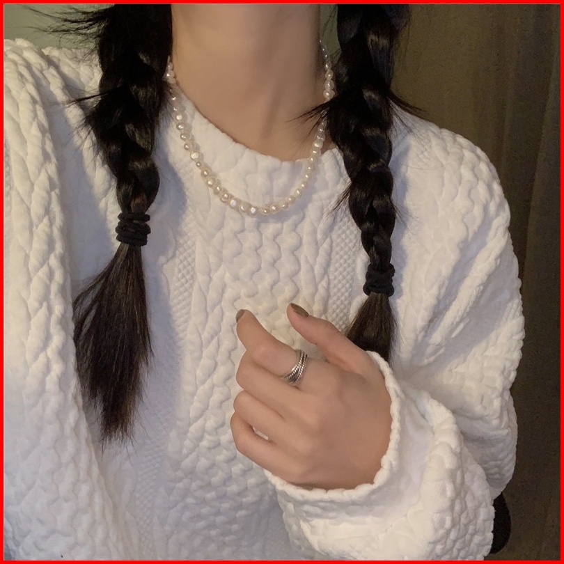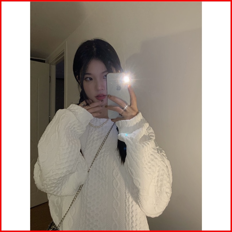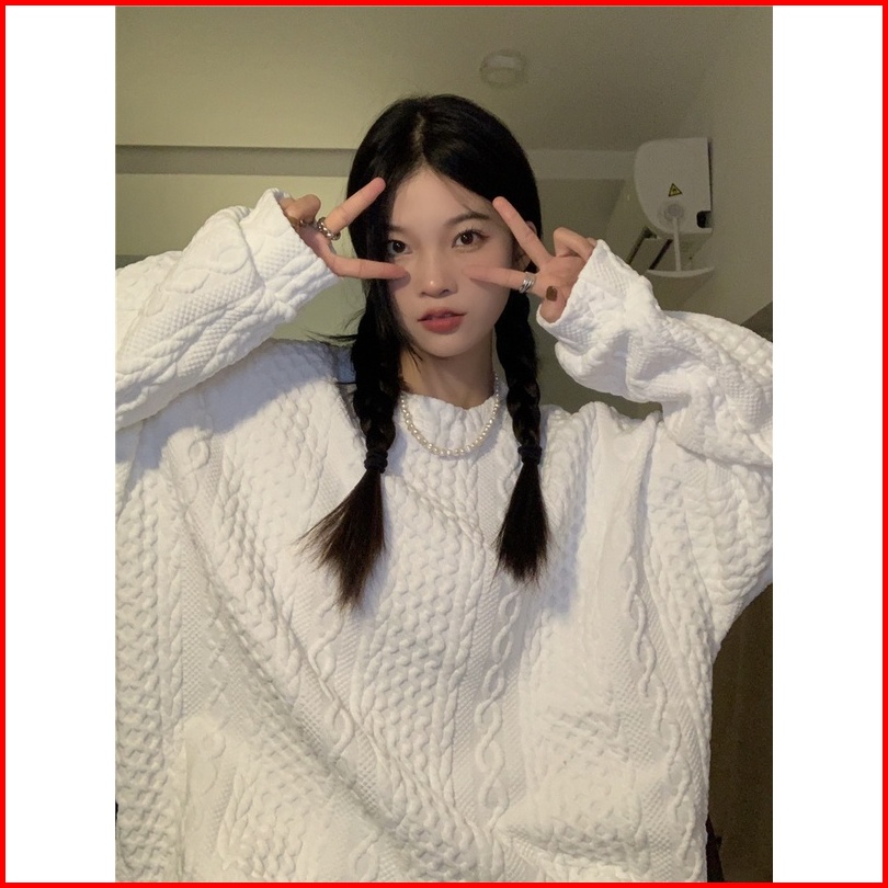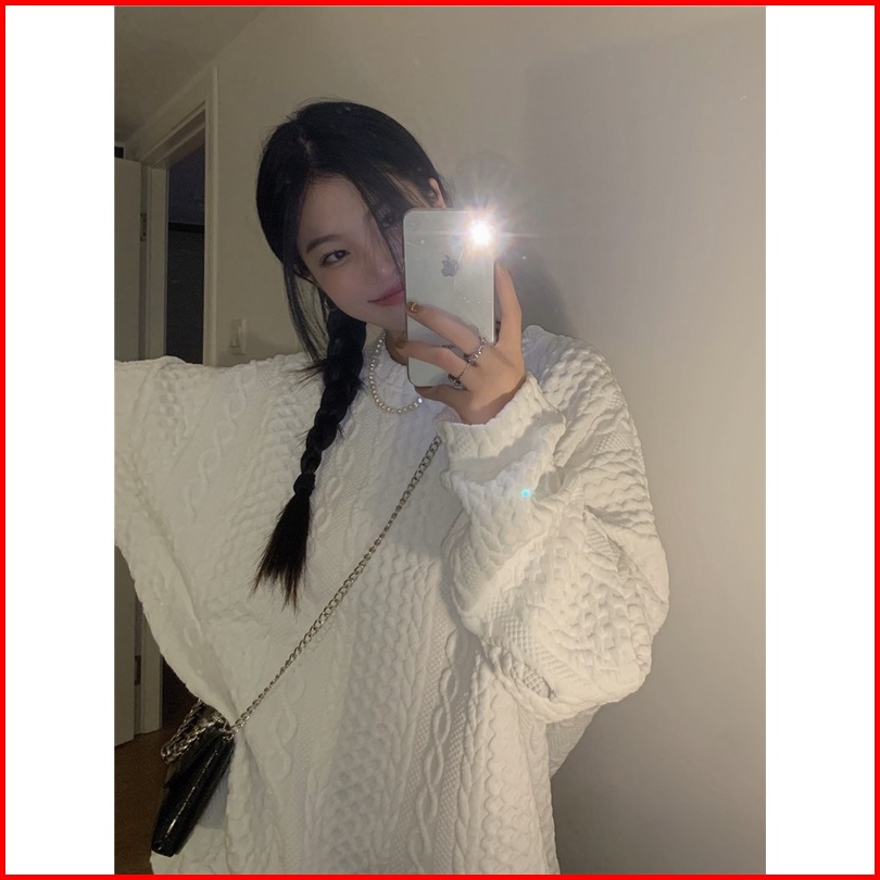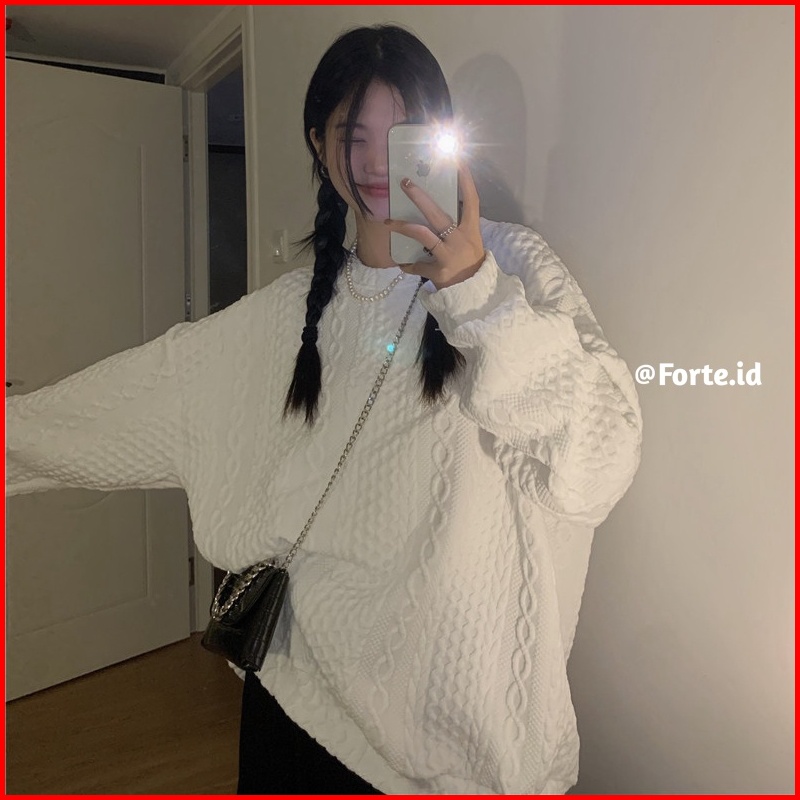 Crewneck Sweater Wanita Oversize Basic Colour Korean Style Atasan Lengan Panjang