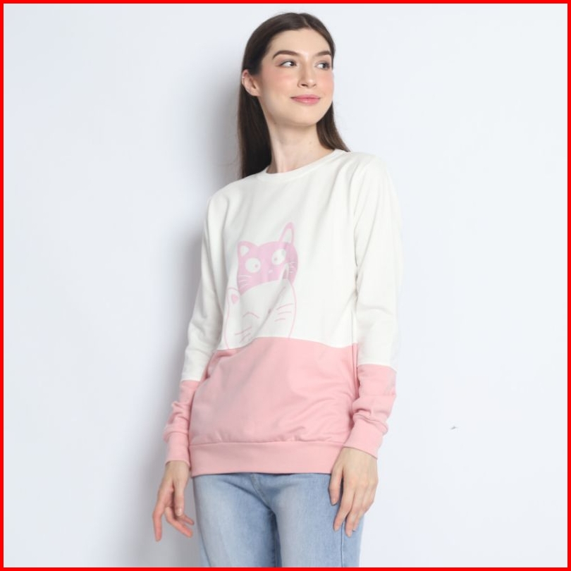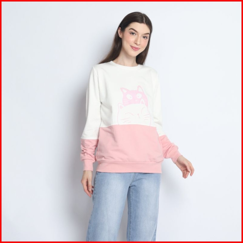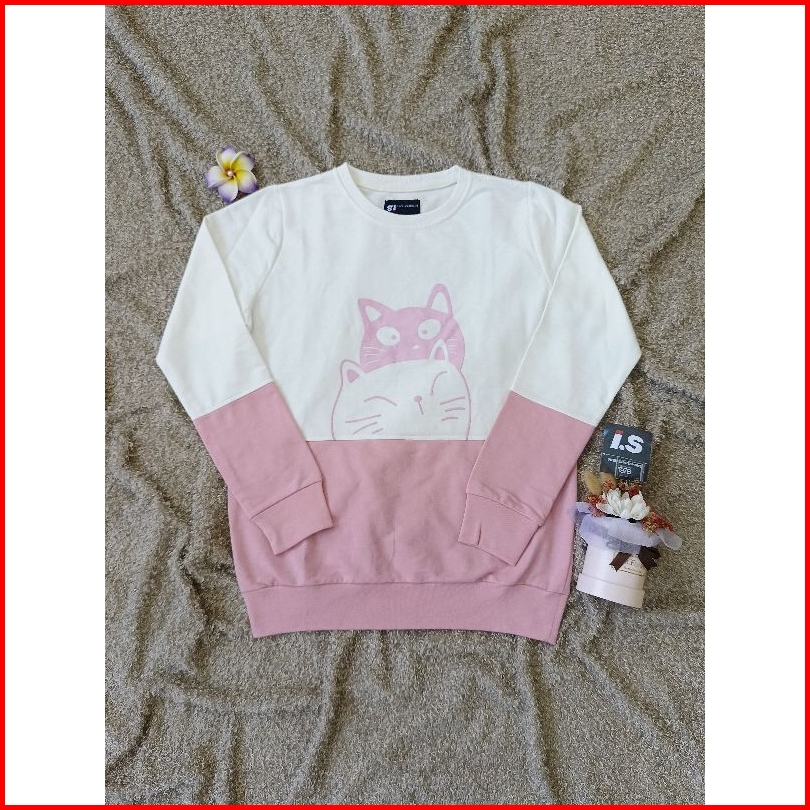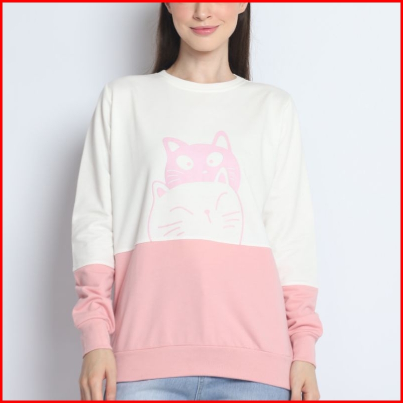 L09 Sweater Wanita Kucing Kekinian Bahan Katun Kombinasi