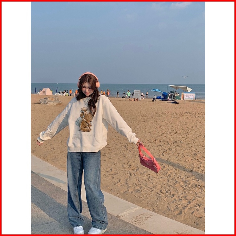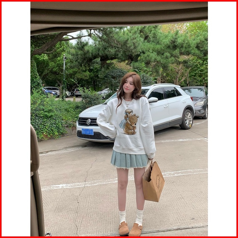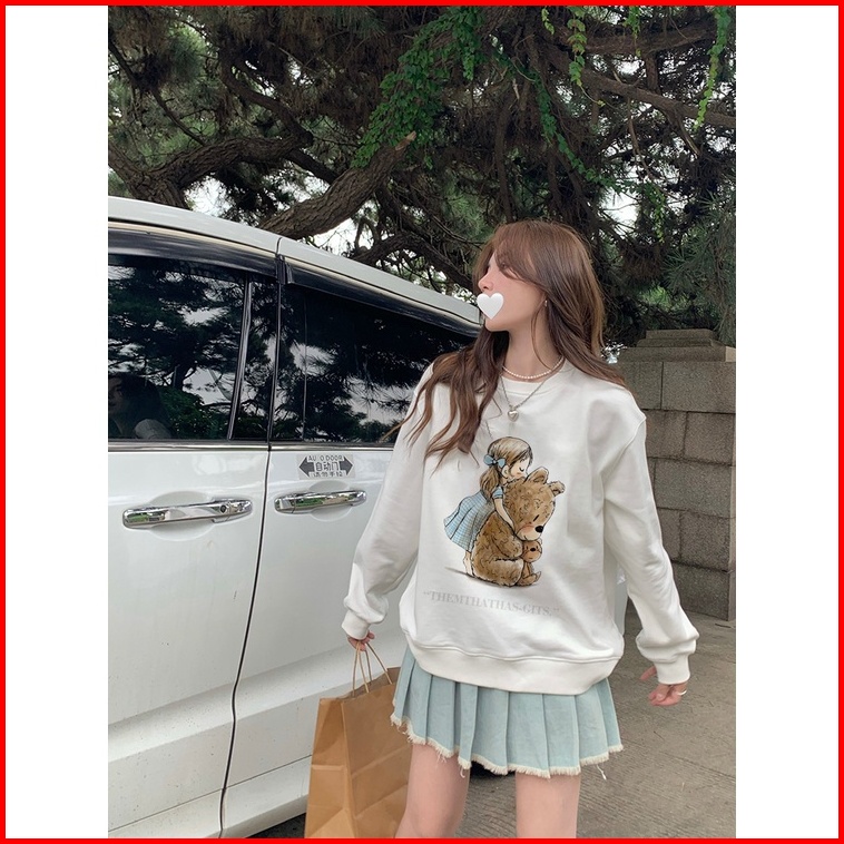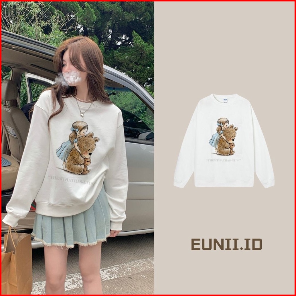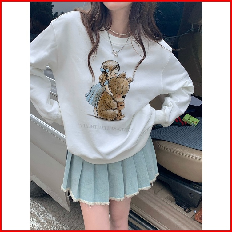 Eunii Sweater Lengan Panjang Little Girl And Bear Korean Style Hoodie Oversize Baju Wanita Switer Wanita