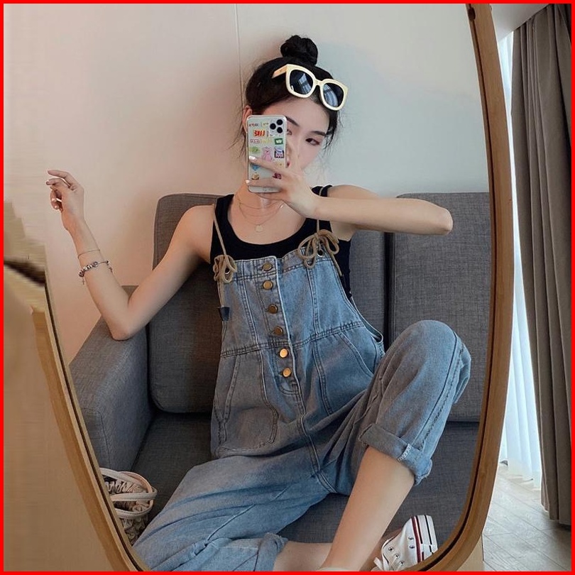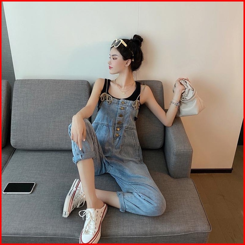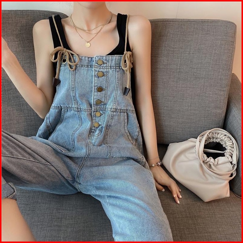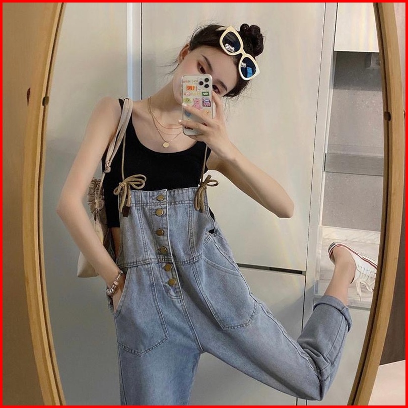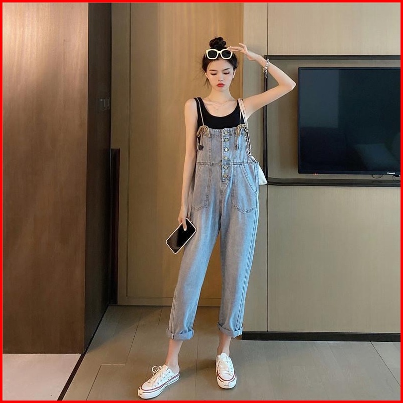 Jumpsuit Jeans Korea Wanita Panjang Sembilan Persepuluh Denim Gaya Baru Impor Nyaman